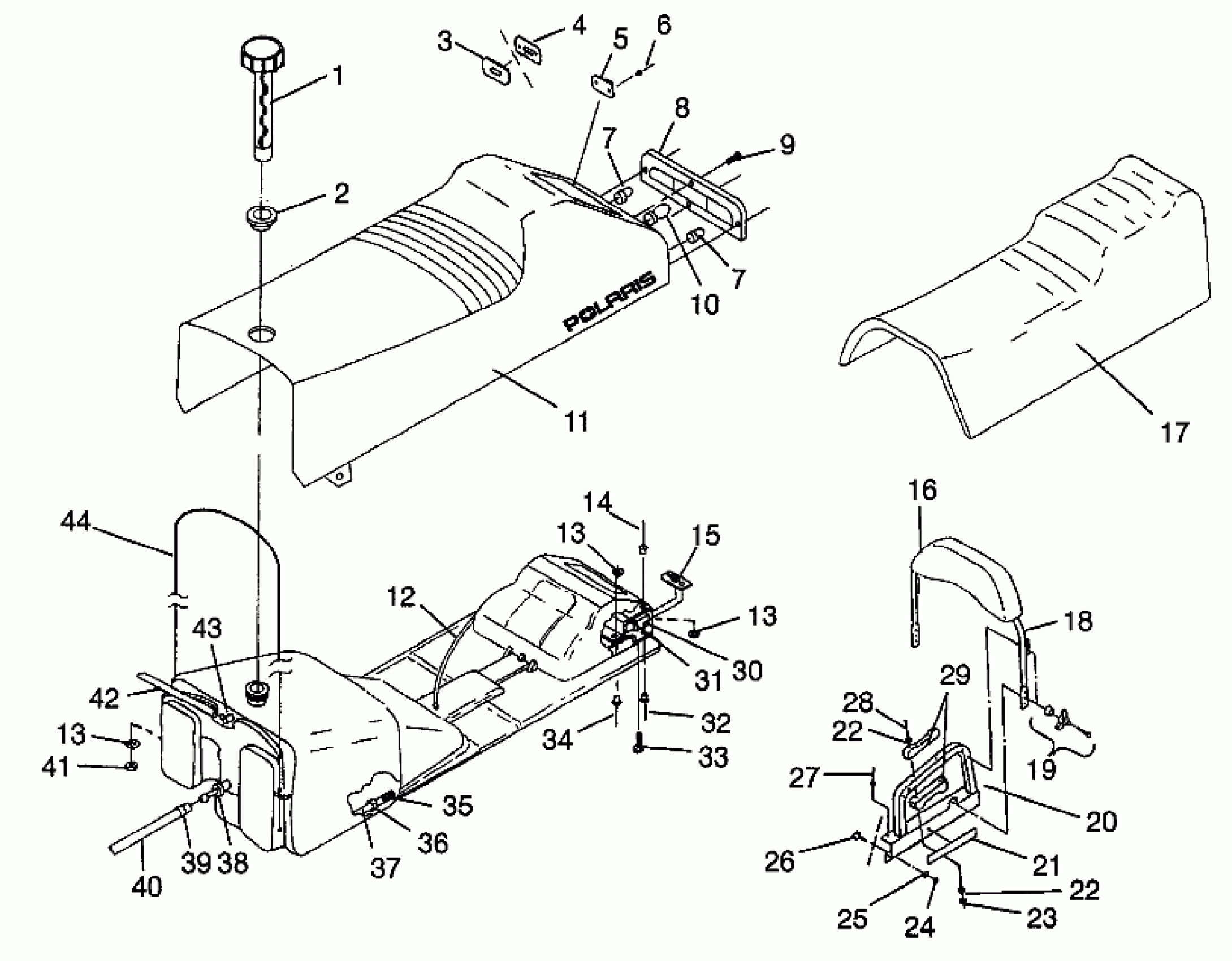 Polaris TRAIL - 0972761 SEAT and GAS TANK TRAIL 0972761, EUROPEAN TRAIL E972761, TRAIL TOURING 097 (4938313831A010) Diagram