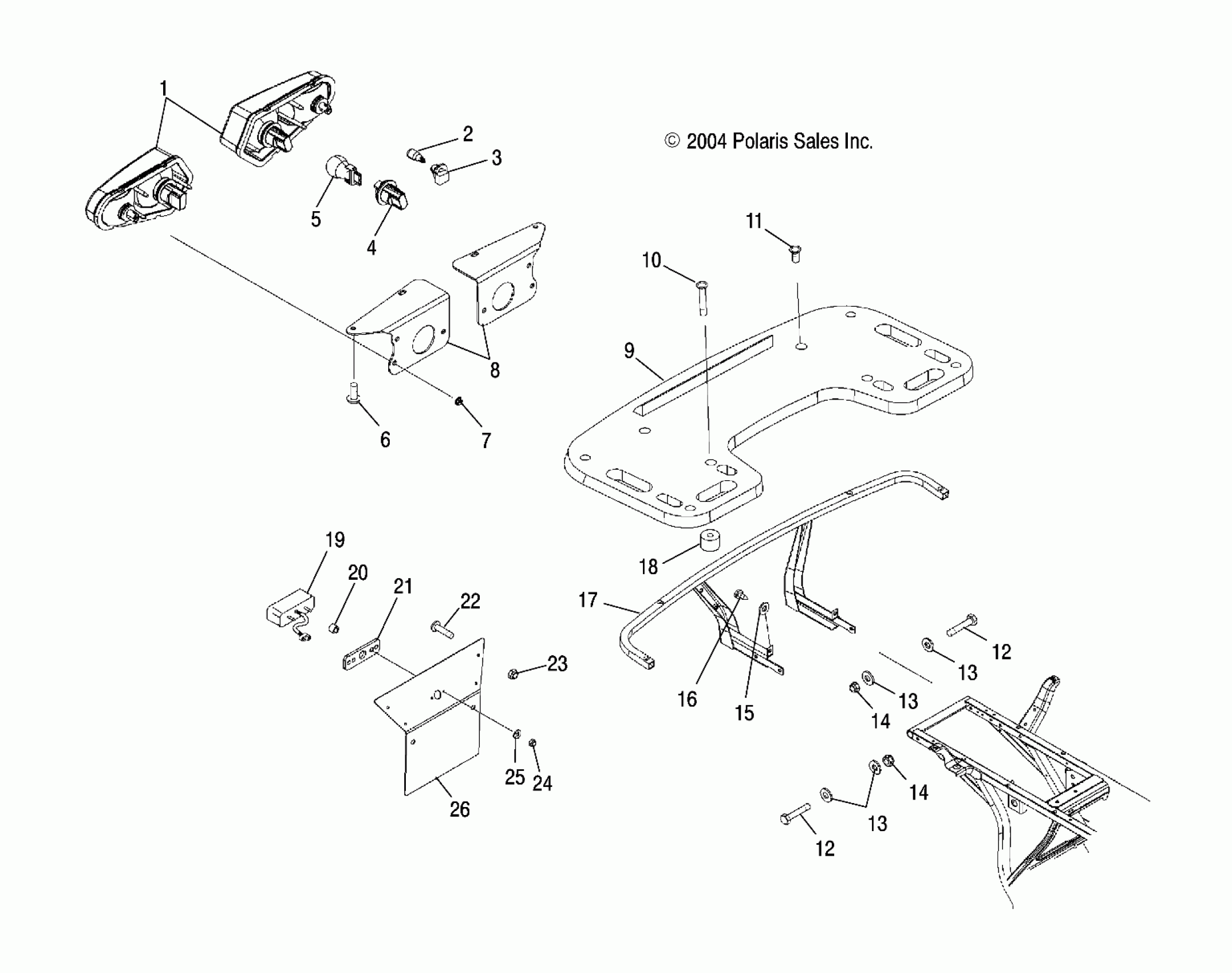 Polaris TRAIL BOSS 330 QUADRICYCLE - A05CA32EA RACK, REAR and TAILLIGHTS - A05CA32EA (4999200489920048A06) Diagram