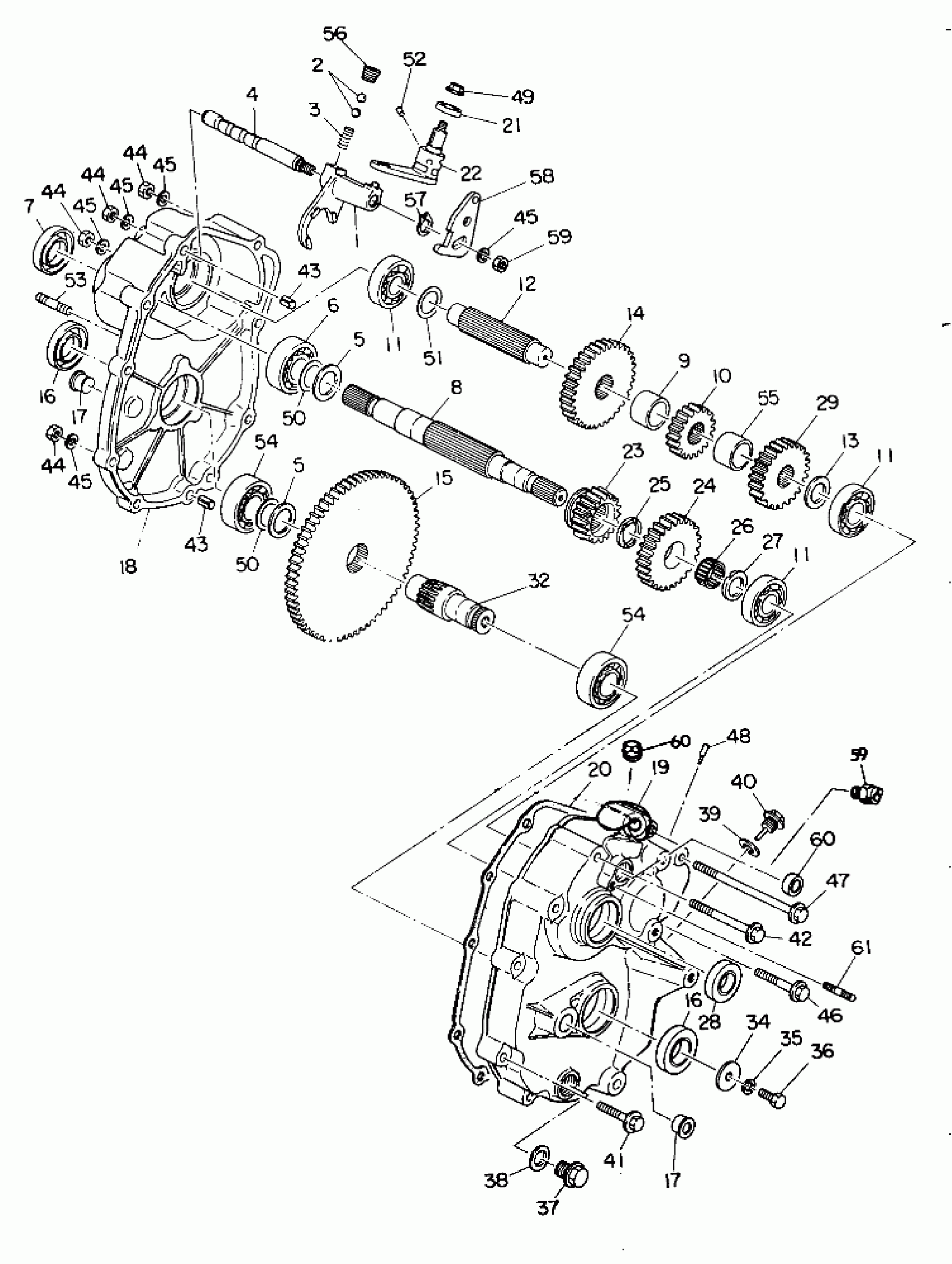 TRANSMISSION ASM. Substituted by 1341081 (Incl. 1-29, 32, 34-61)