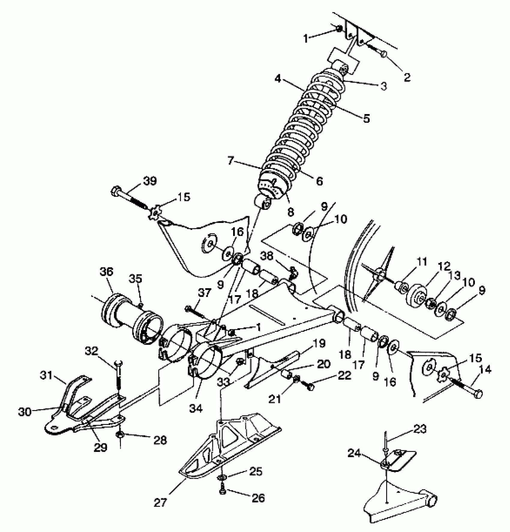 Polaris TRAIL BOSS - W938527 SWING ARM/SHOCK MOUNTING Trail Boss W938527 (4924072407018A) Diagram