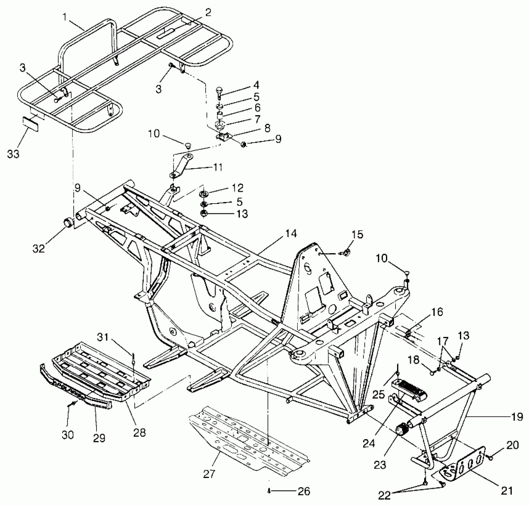 Polaris TRAIL BOSS - W968527 BUMPER and RACK MOUNTING Trail Boss W968527 (4935883588A007) Diagram
