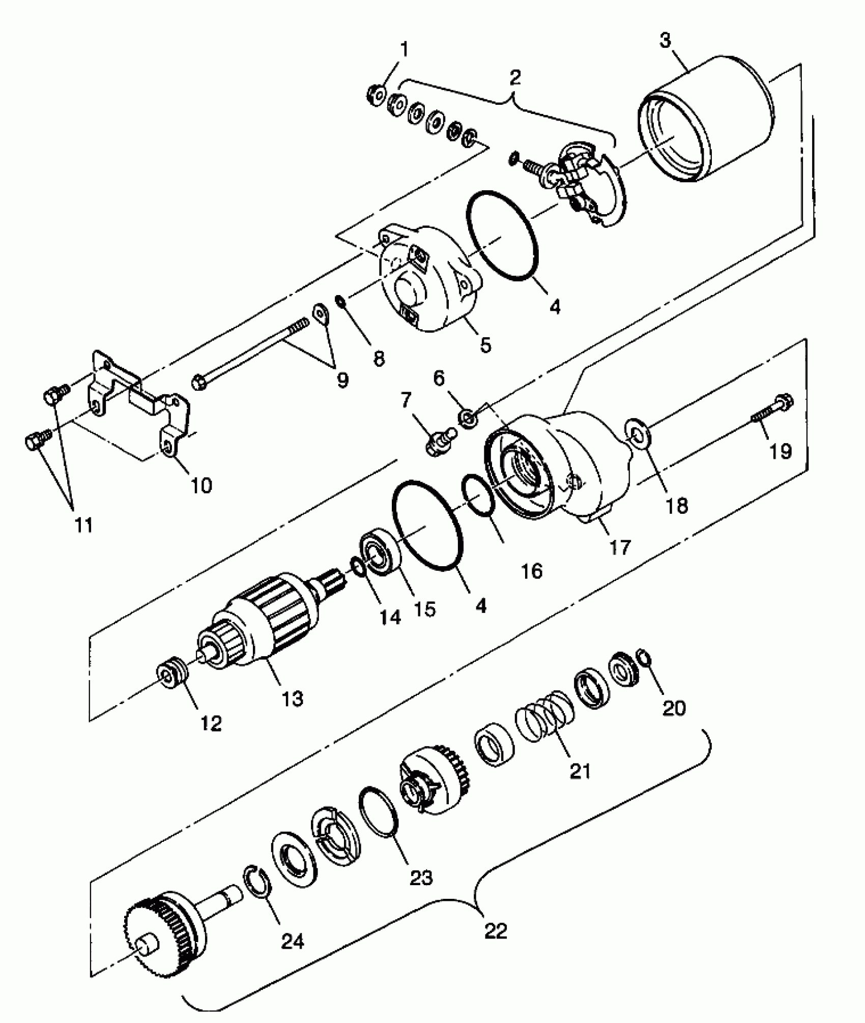 MOTOR ASM,STARTER Substituted by 3087043 (Incl. 1-5, 8, 9, 12-18, 20-24)