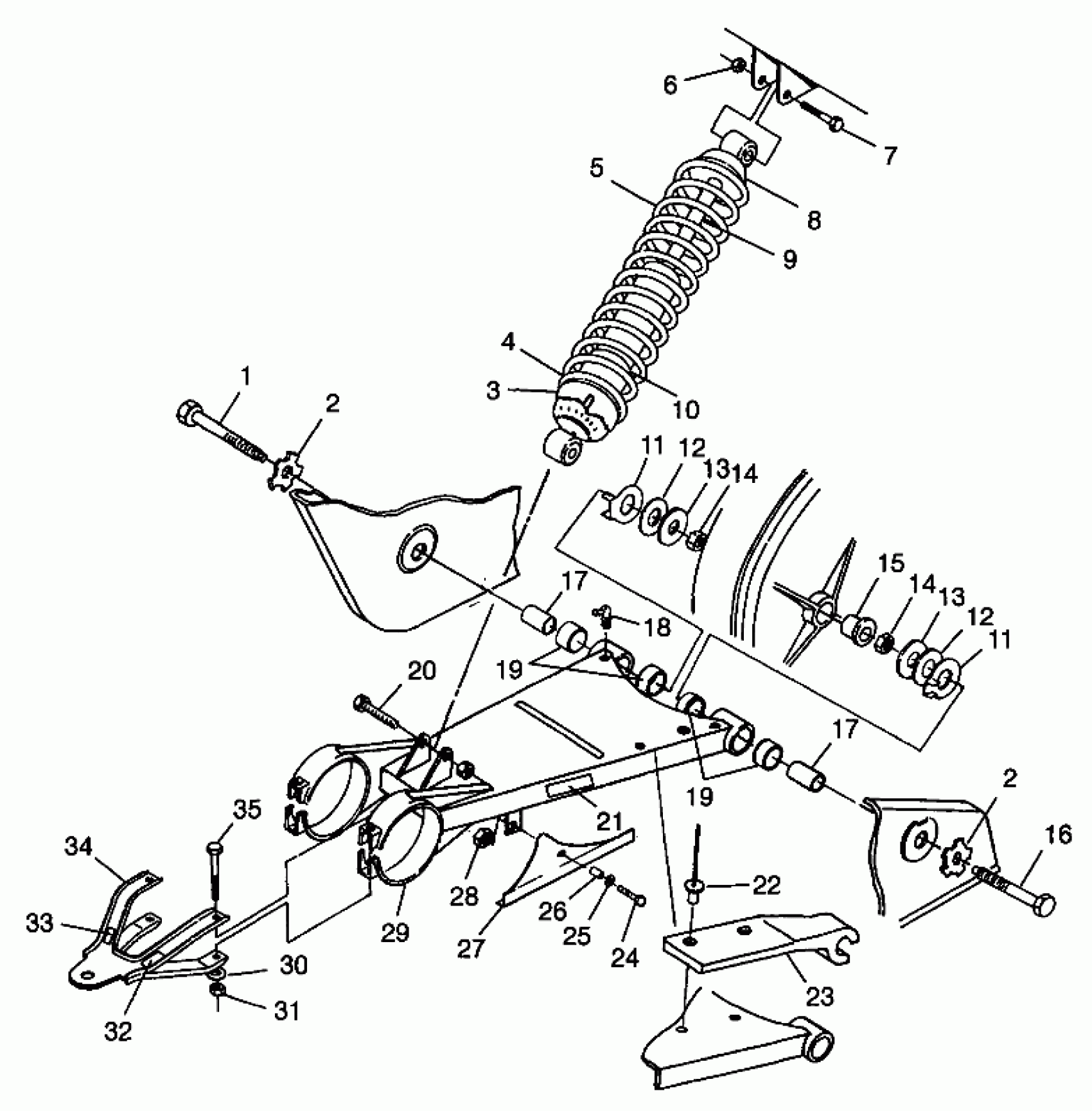 Polaris TRAIL BOSS - W98AA25C SWING ARM/SHOCK MOUNTING - W98AA25C (4945314531B009) Diagram