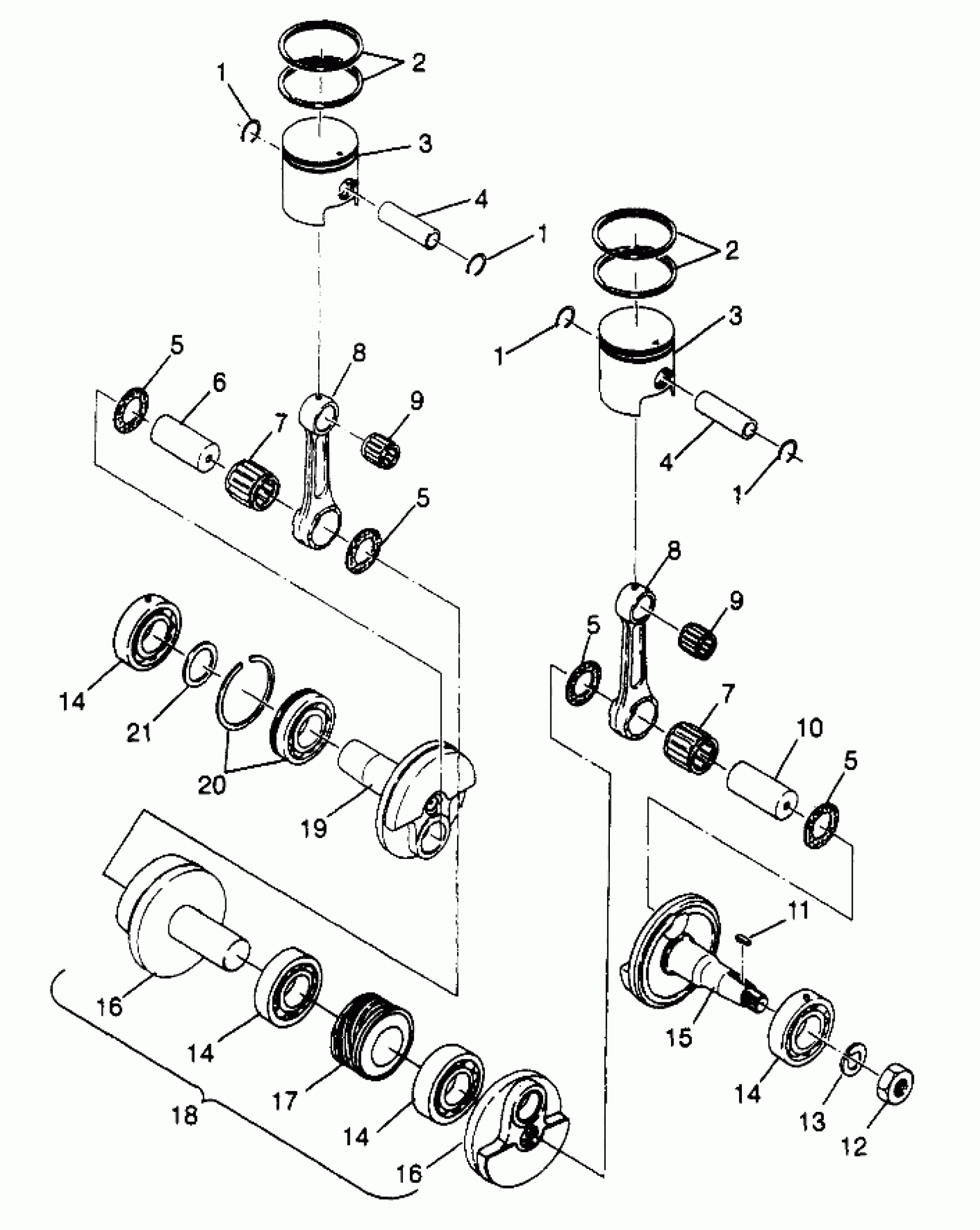CRANKSHAFT ASM. Substituted by 3084585 (Incl. 5-8, 14-17, 19-21)