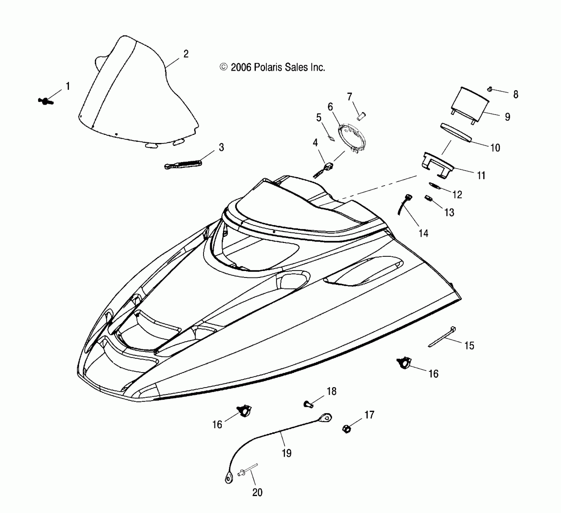 Polaris TRAIL TOURING DELUXE - S07NT5BS/BSA/BE/BEA HOOD/WINDSHIELD - S07NT5BS/BSA/BE/BEA (49SNOWHOODTRAILTRG) Diagram