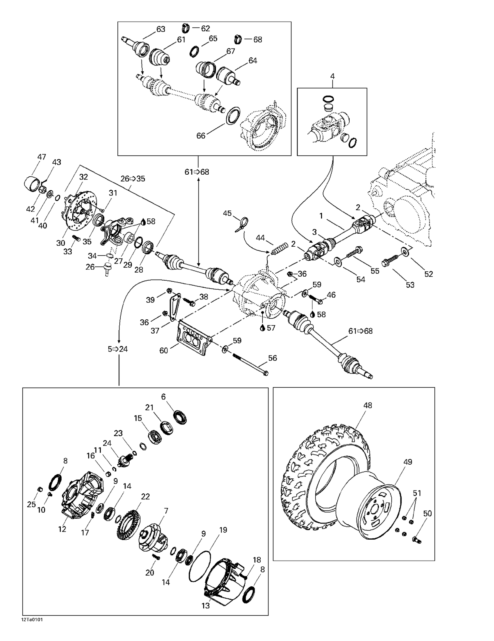 Can-Am Traxter, 7423/7424 (yellow/jaune), 2001 Drive System, Front Diagram