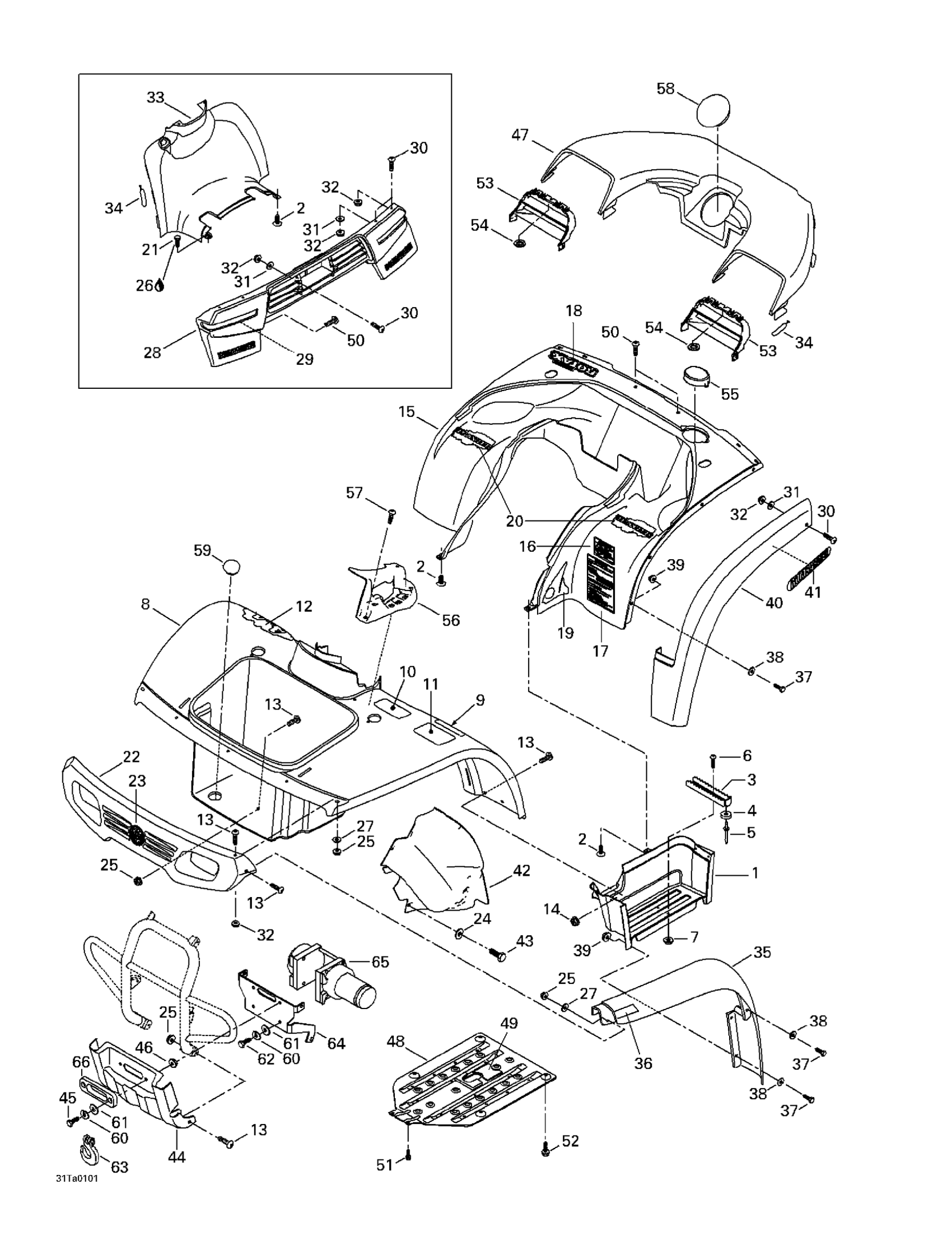 Can-Am Traxter, 7423/7424 (yellow/jaune), 2001 Body And Accessories Diagram
