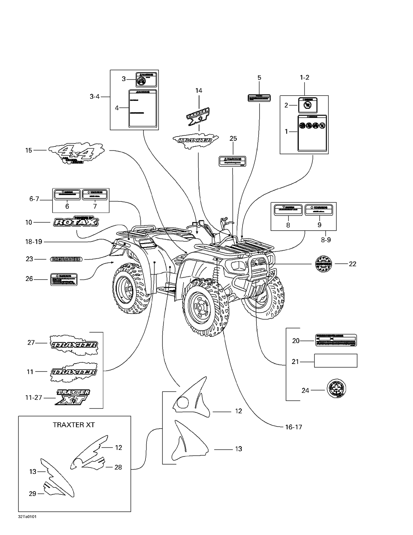 Can-Am Traxter, 7423/7424 (yellow/jaune), 2001 Decals Diagram