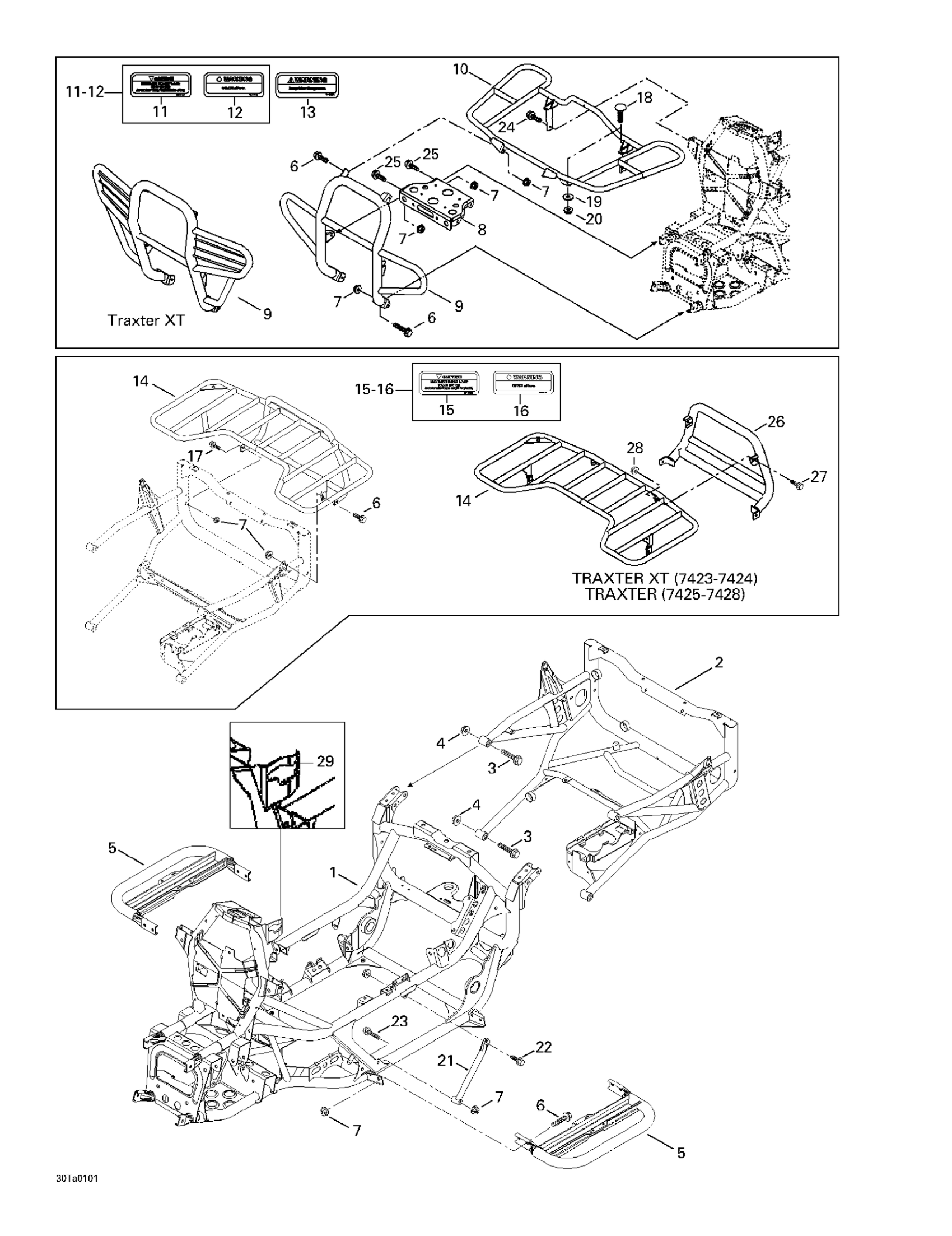 Can-Am Traxter, 7423/7424 (yellow/jaune), 2001 Frame And Luggage Racks Diagram