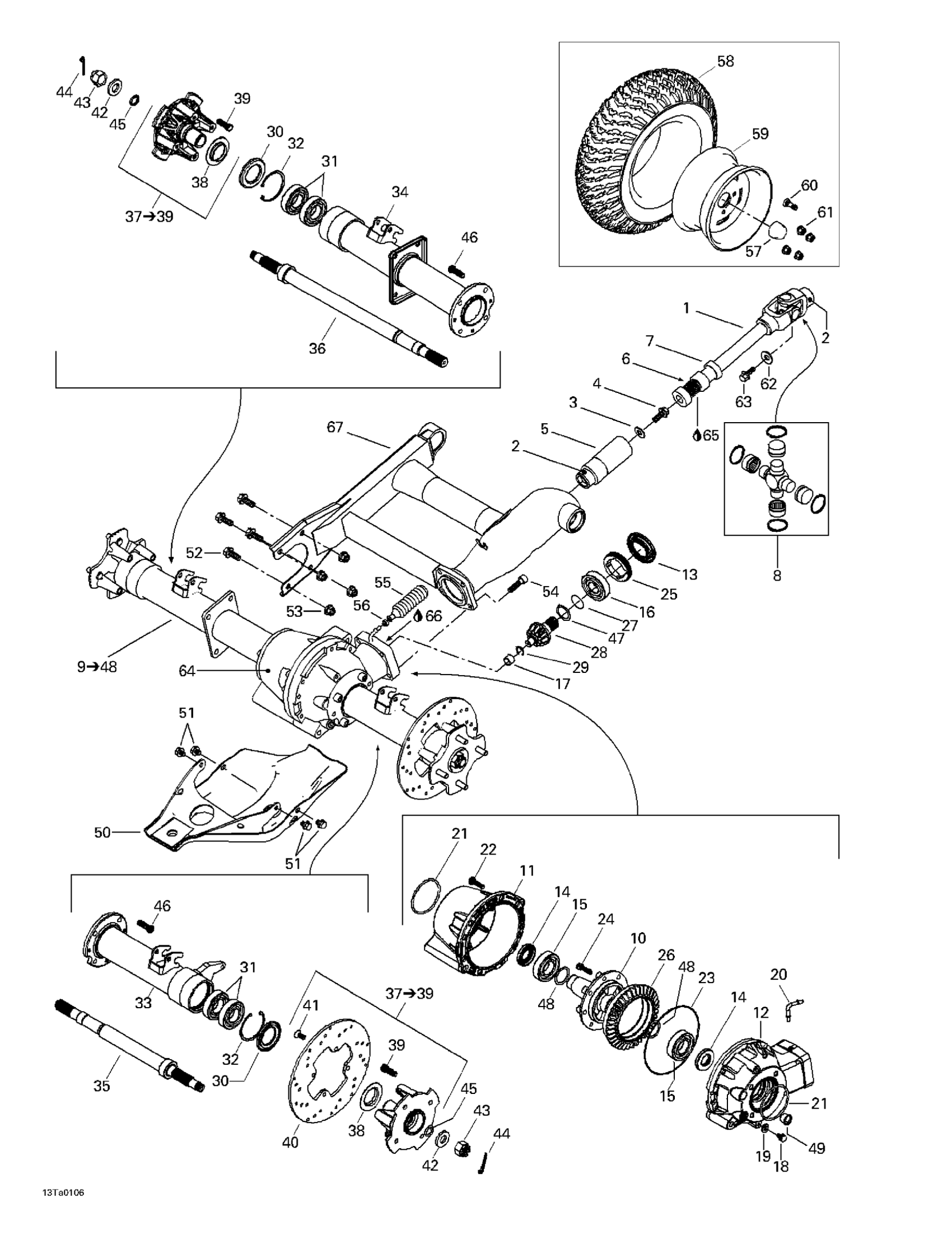 Can-Am Traxter, 7459/7460/7465/7466, 2001 Drive System, Rear Diagram