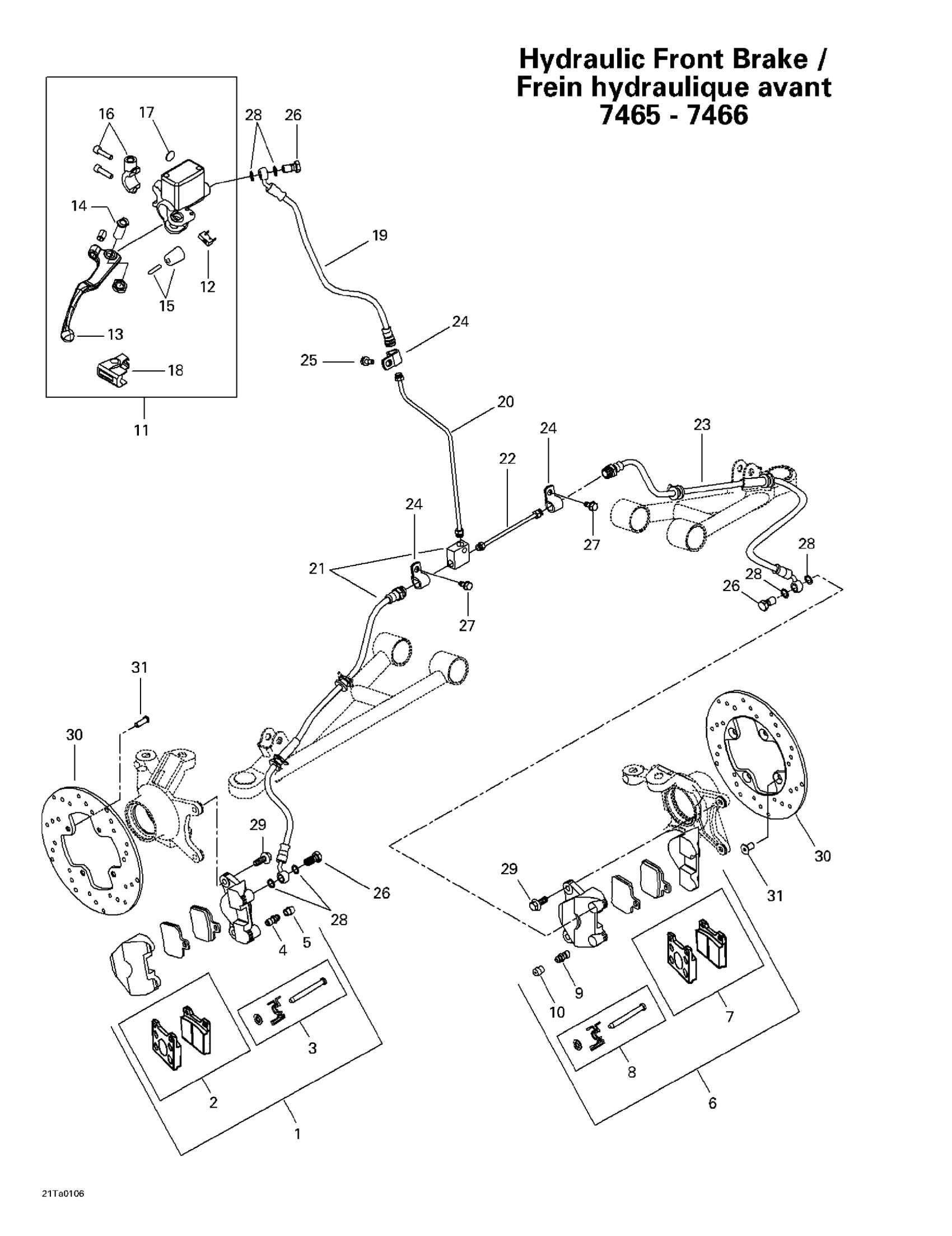 Can-Am Traxter, 7459/7460/7465/7466, 2001 Hydraulic Front Brake (7465 - 7466) Diagram