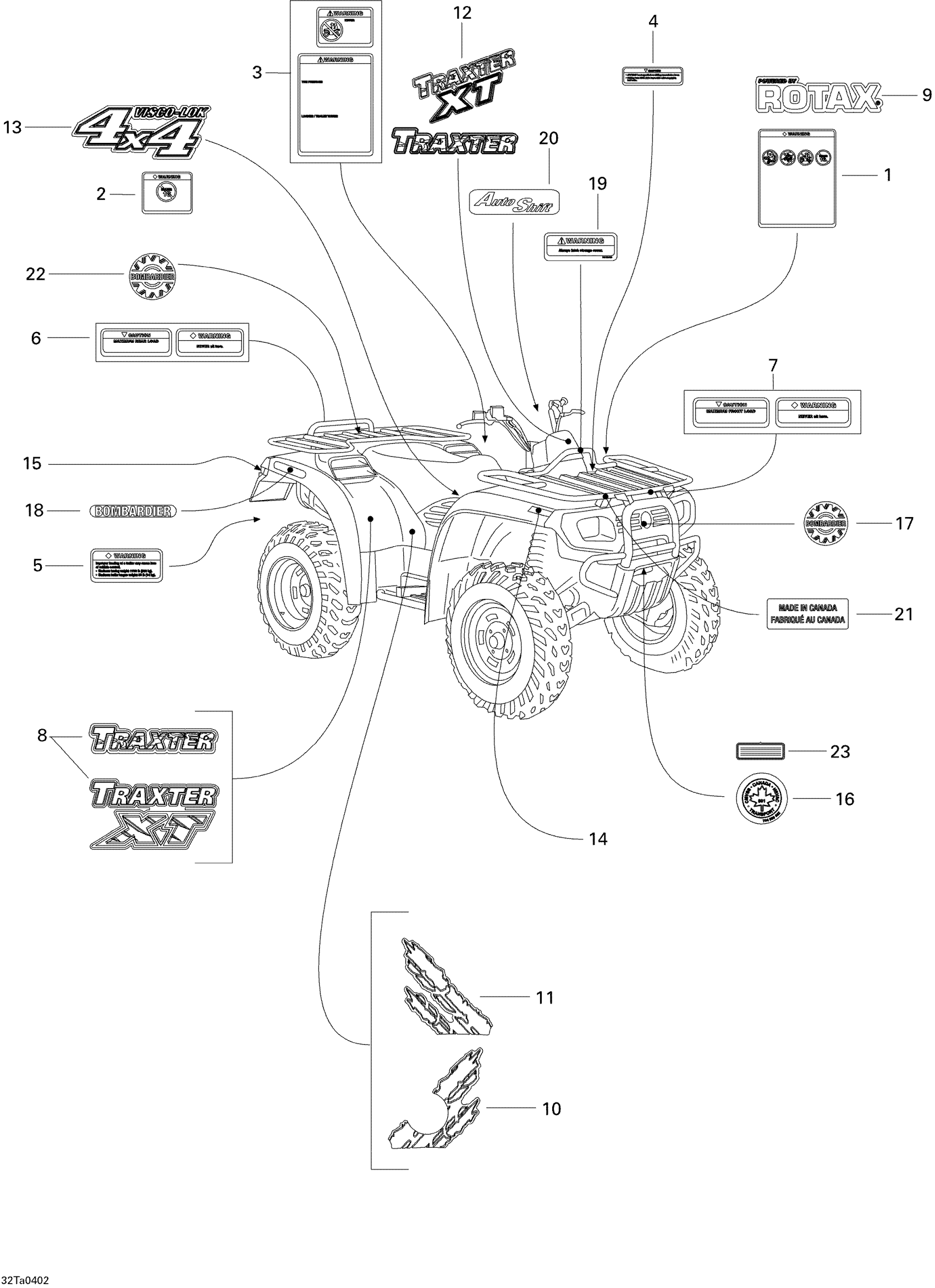 Can-Am Traxter Auto Std & XT, 2004 Decals Diagram