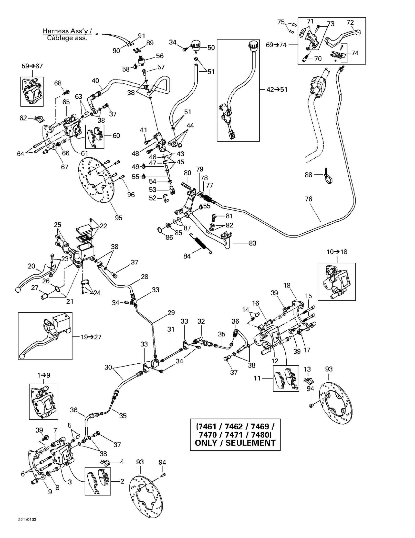 Can-Am Traxter Autoshift, 2001 Hydraulic Brake (7461 7462 Diagram