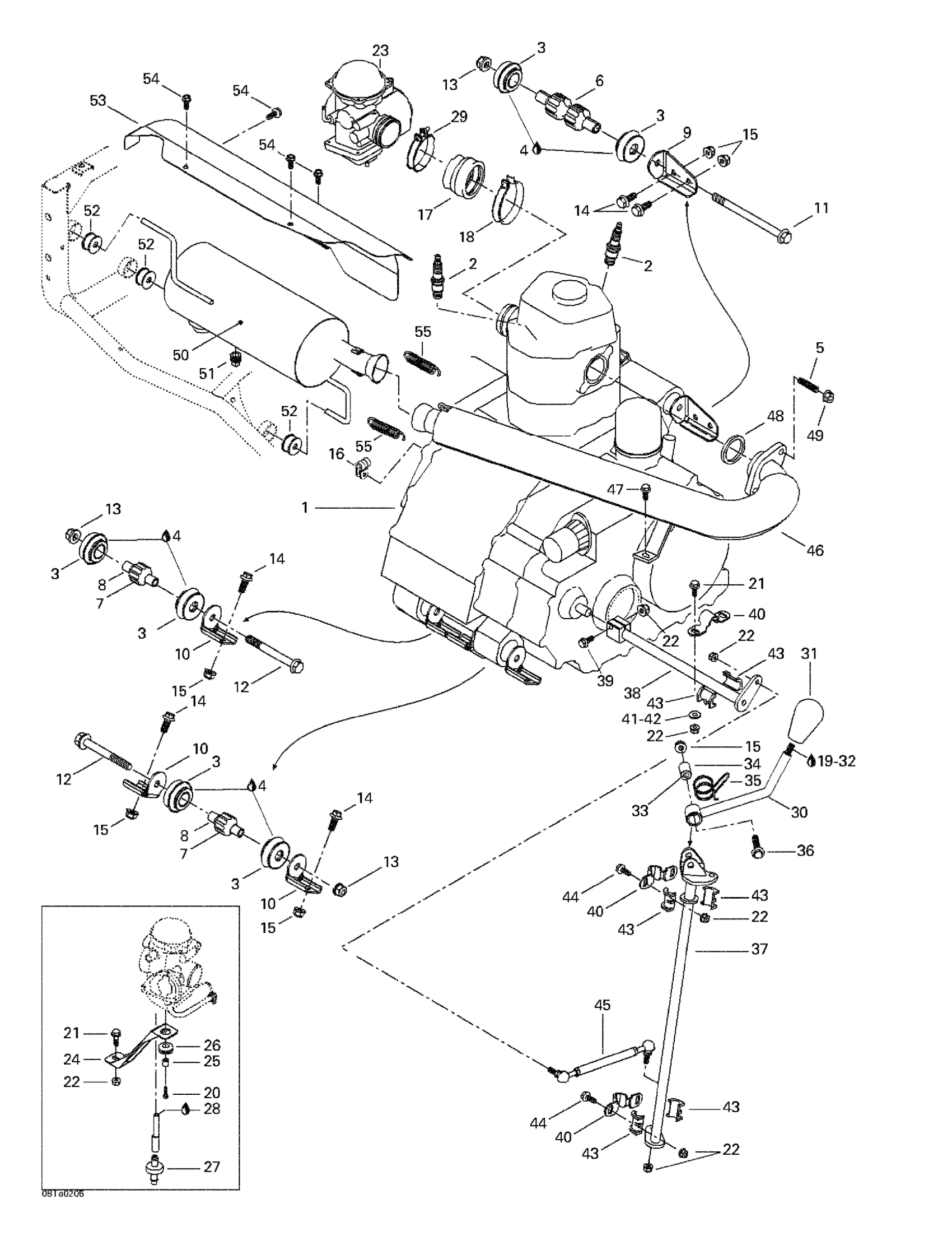 Can-Am Traxter Autoshift, 2002 Exhaust System Diagram