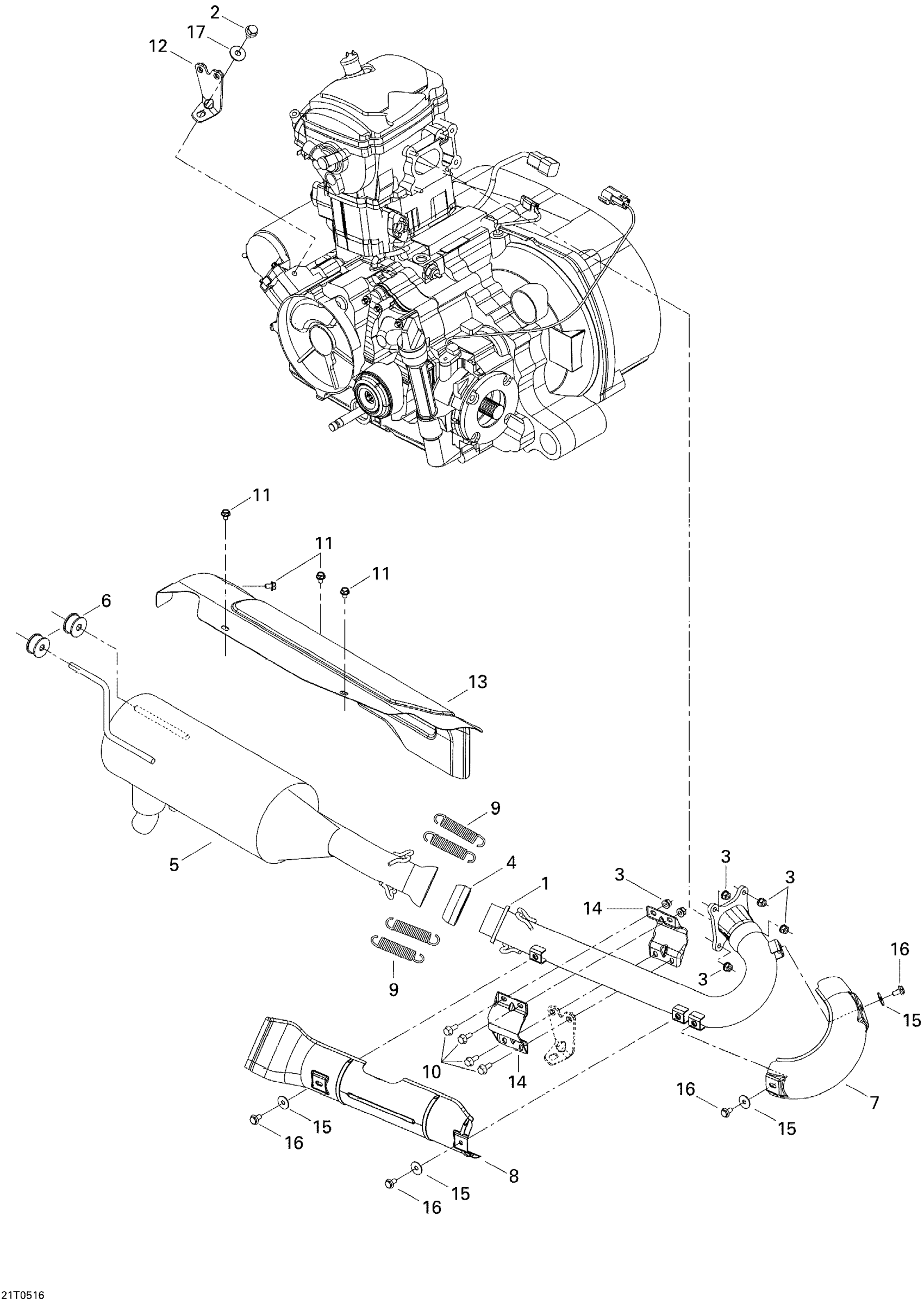 Can-Am Traxter CVT (500, 650, 650 XT), 2005 Exhaust System Diagram