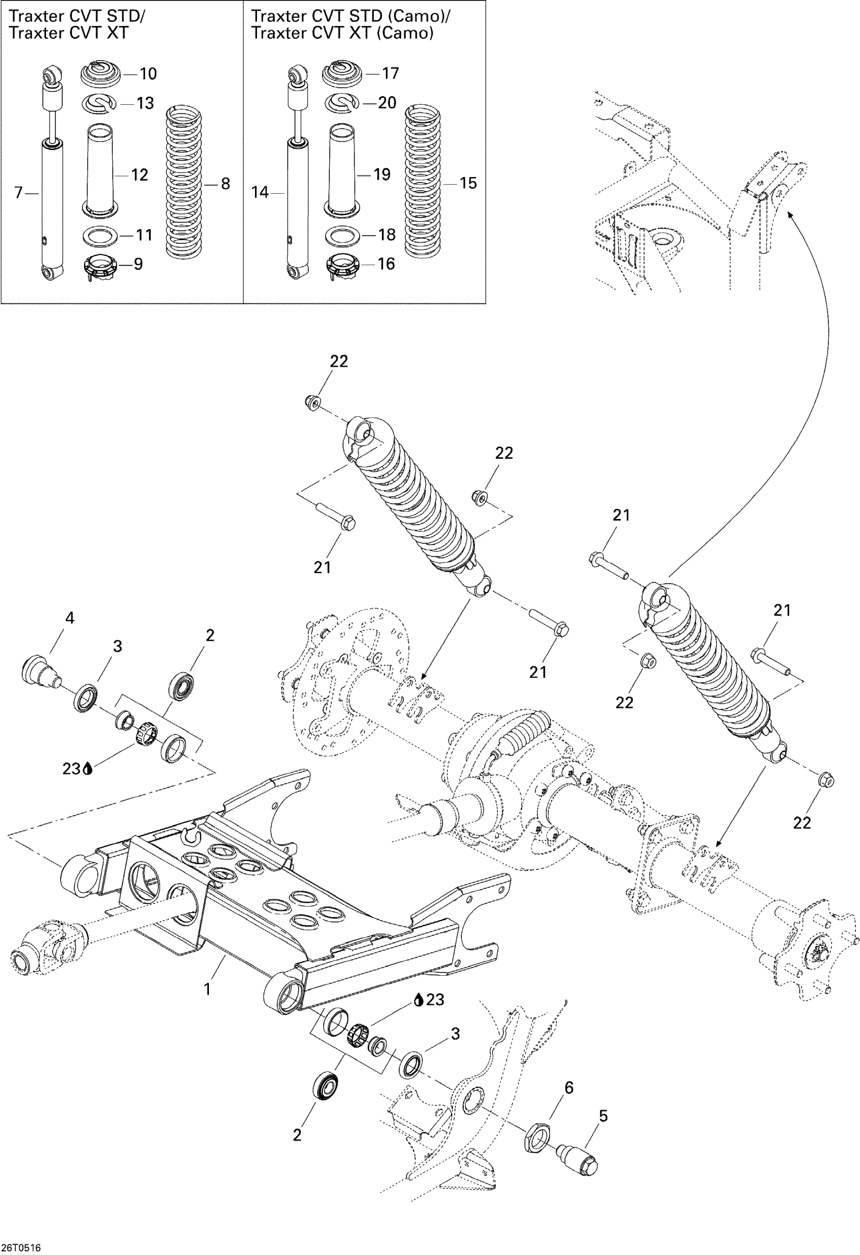 Can-Am Traxter CVT (500, 650, 650 XT), 2005 Rear Suspension Diagram