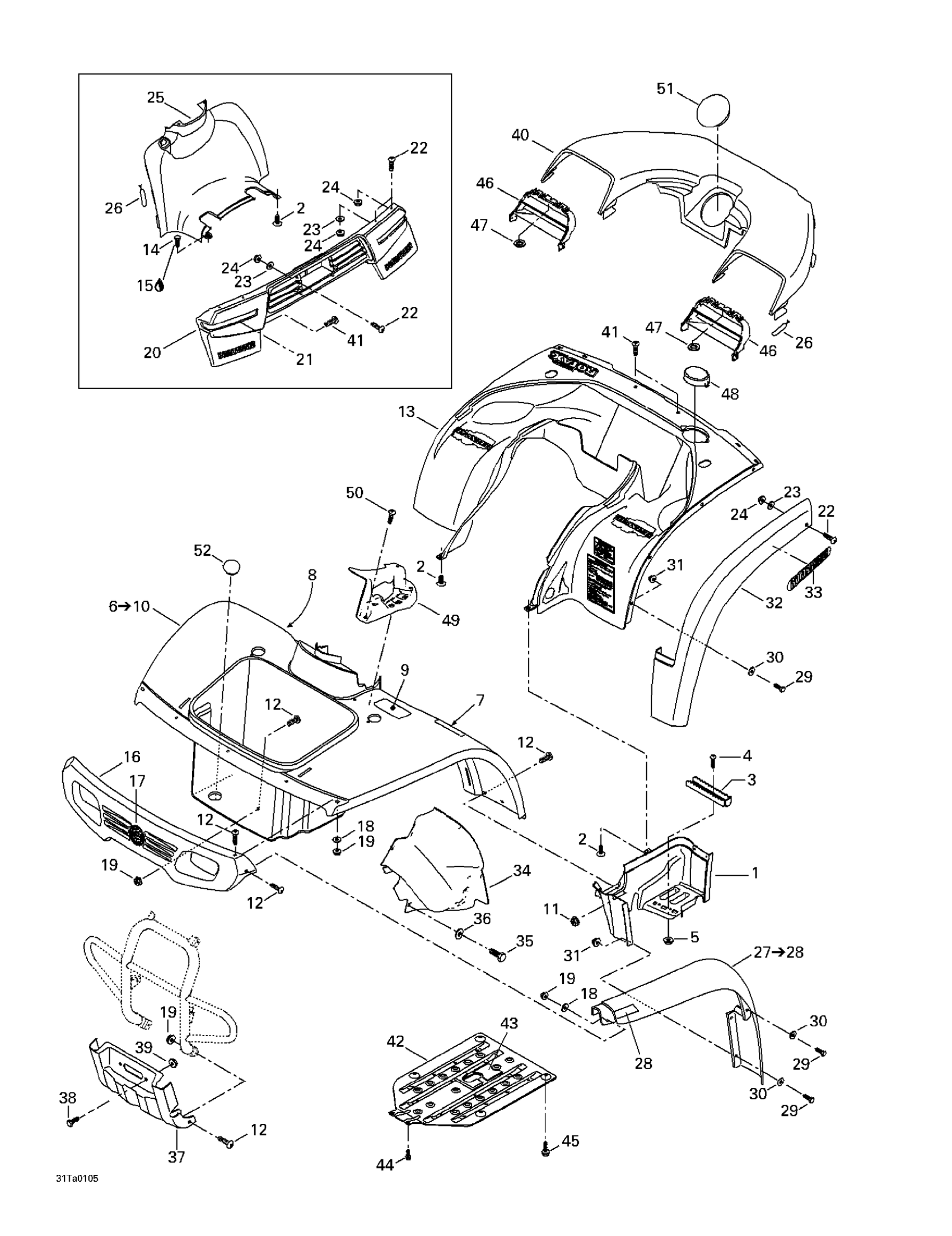 Front Fascia Ass'y, black | Includes 21 To 22