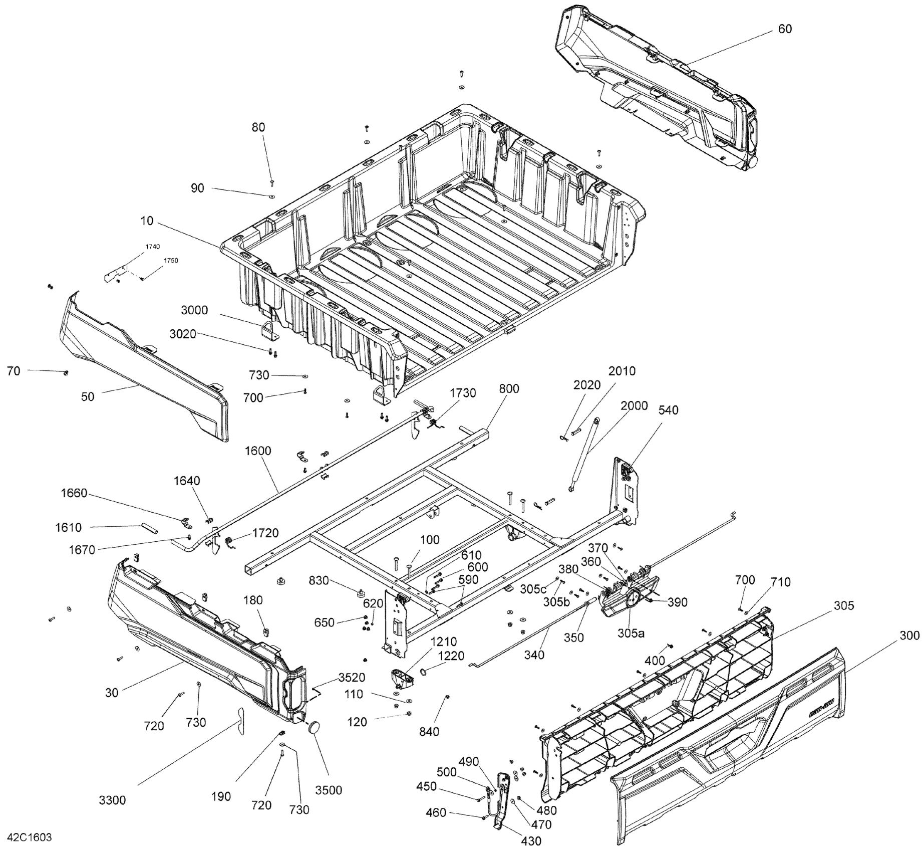 Can-Am Traxter HD8, 2016 Rear Cargo Box Diagram