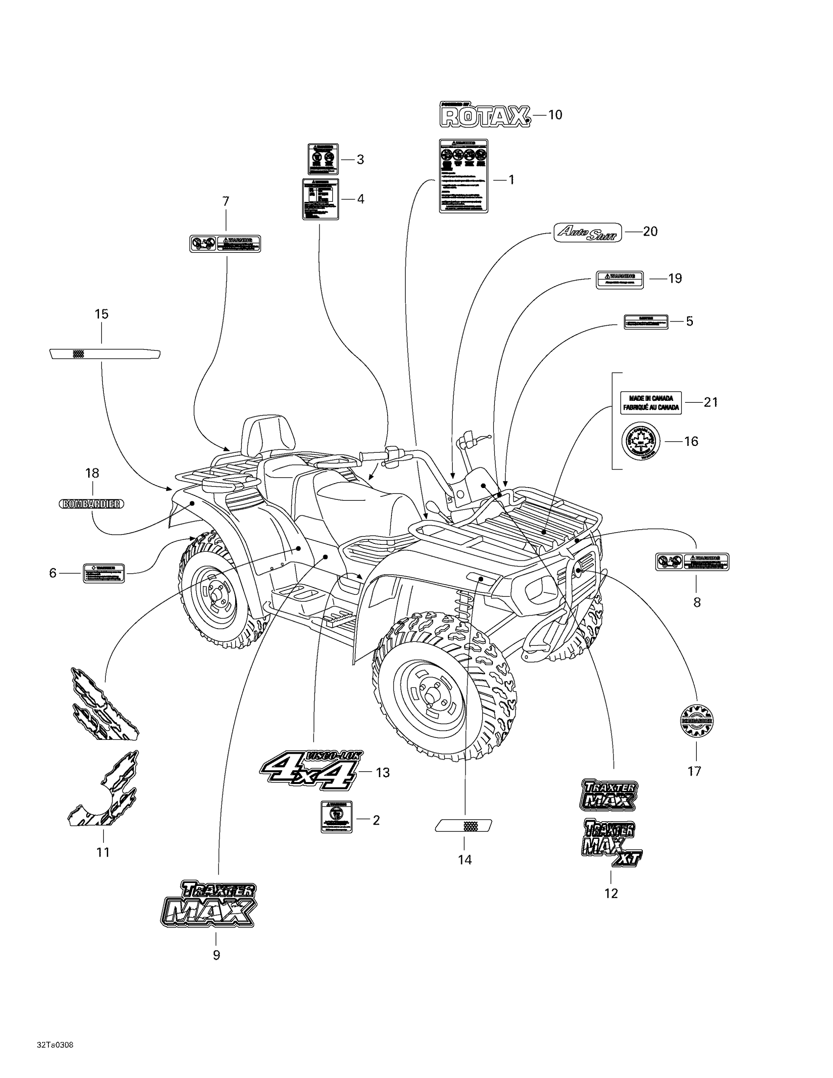 Can-Am Traxter Max, 2003 Decals Diagram