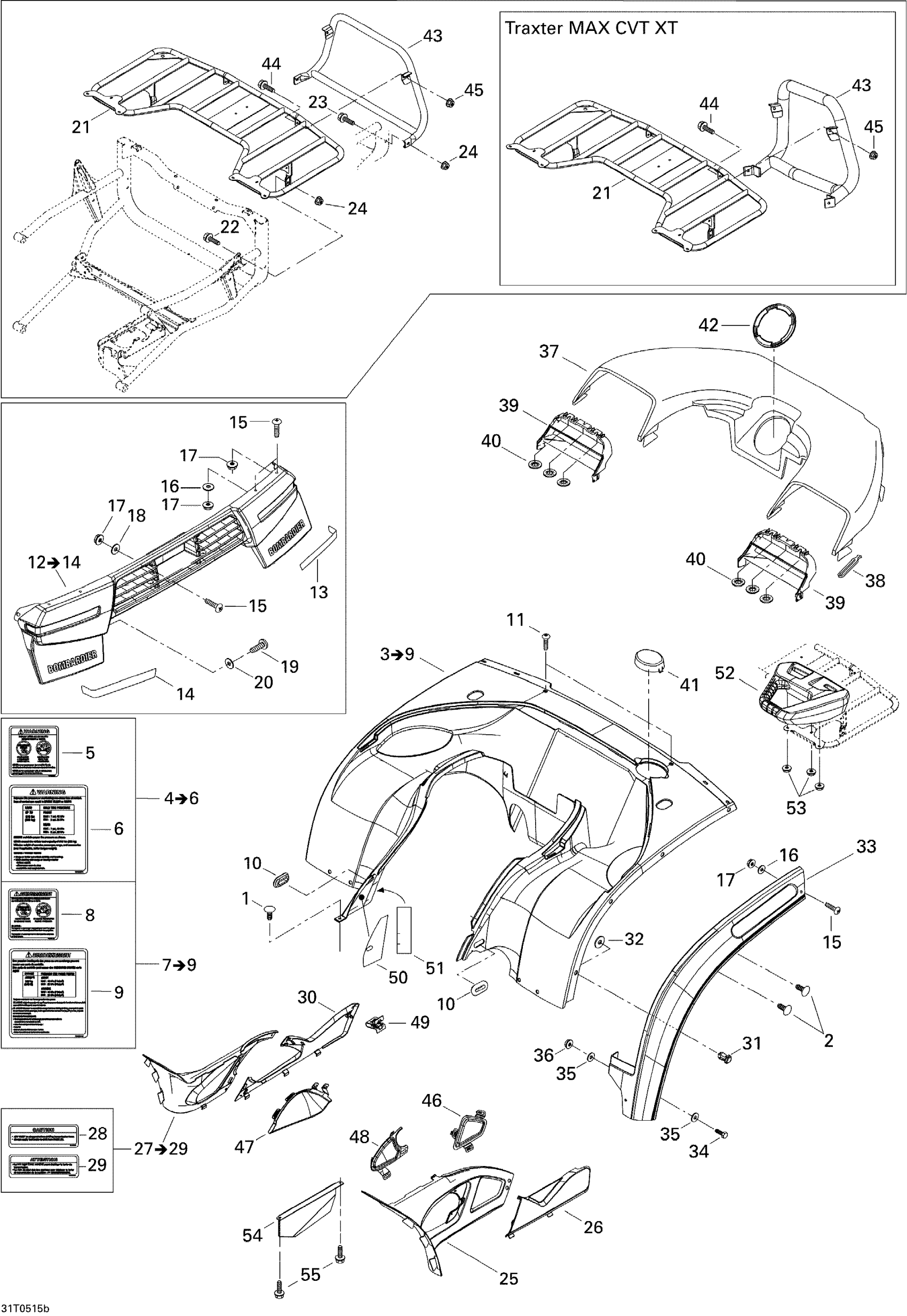 Can-Am Traxter Max CVT 650, 2005 Body And Accessories, Rear View Diagram