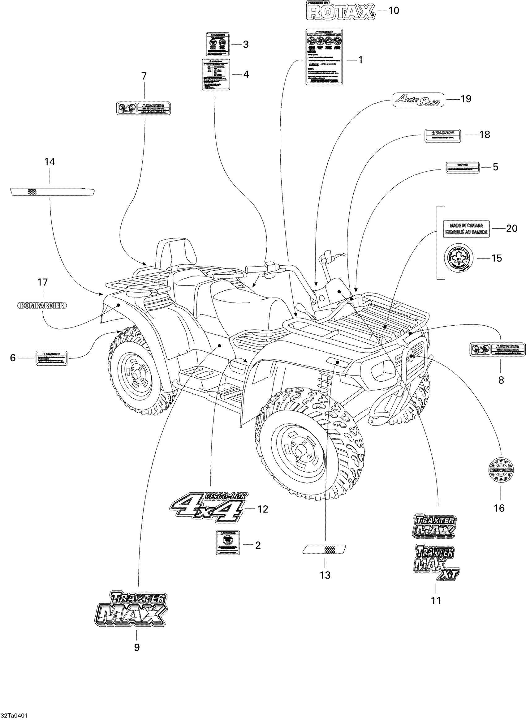 Can-Am Traxter Max Std & Max XT, 2004 Decals Diagram