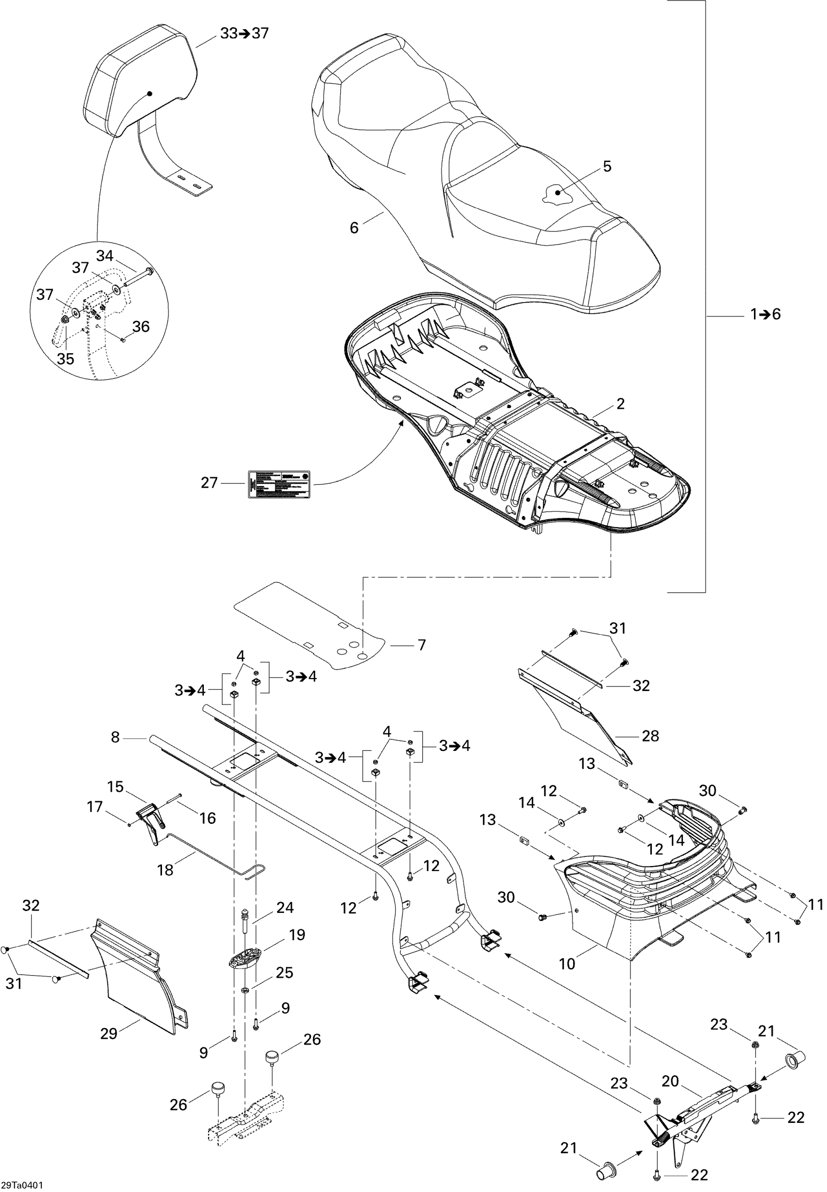 Backrest ass’y | INCLUDES 33 TO 37