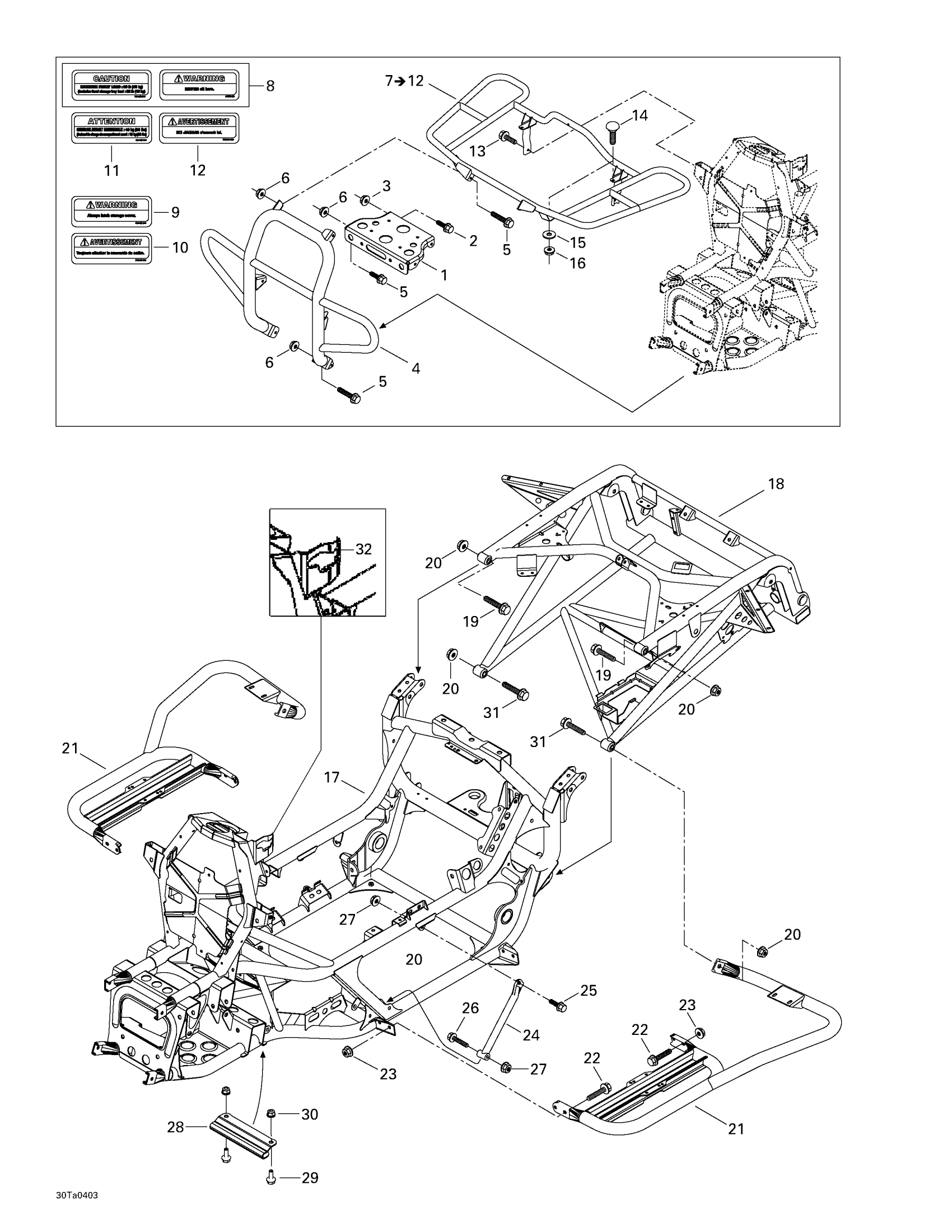 Can-Am Traxter XL, 2004 Frame And Luggage Racks Diagram