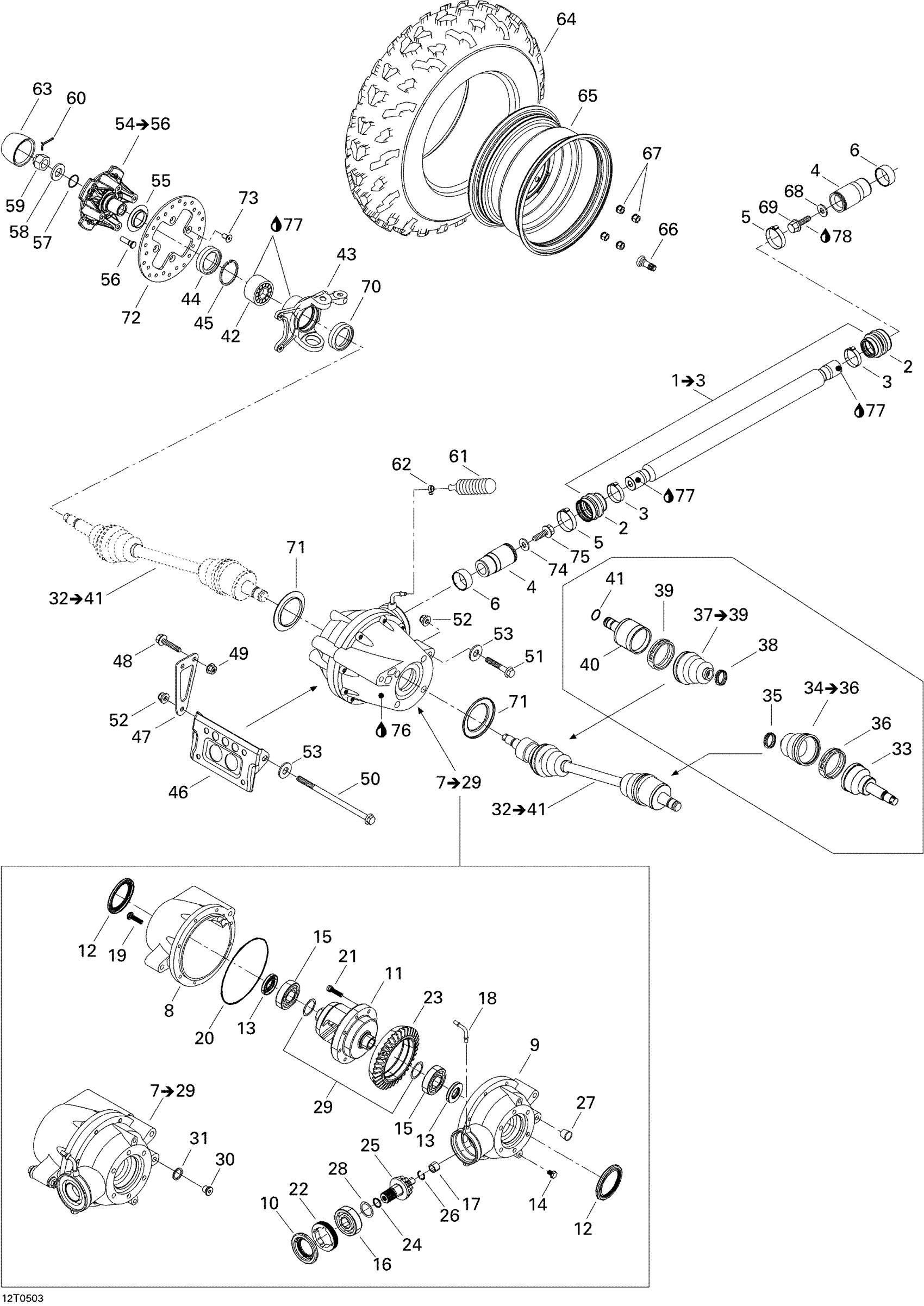 Front Differential Ass'y | Includes 7 to 29