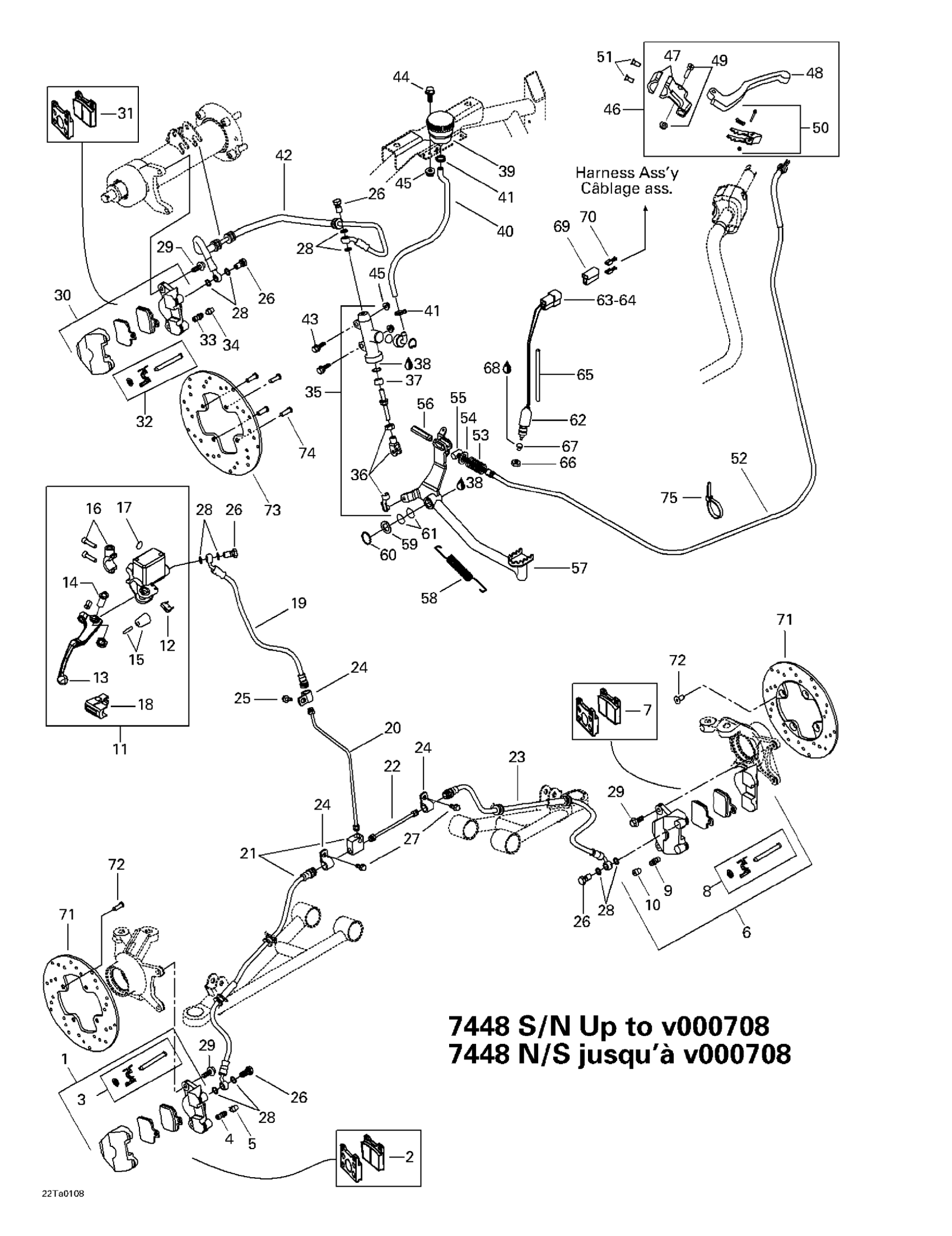 Can-Am Traxter XL, 7448/7489, 2001 Hydraulic Brake (7448 Sn Up To V000708) Diagram