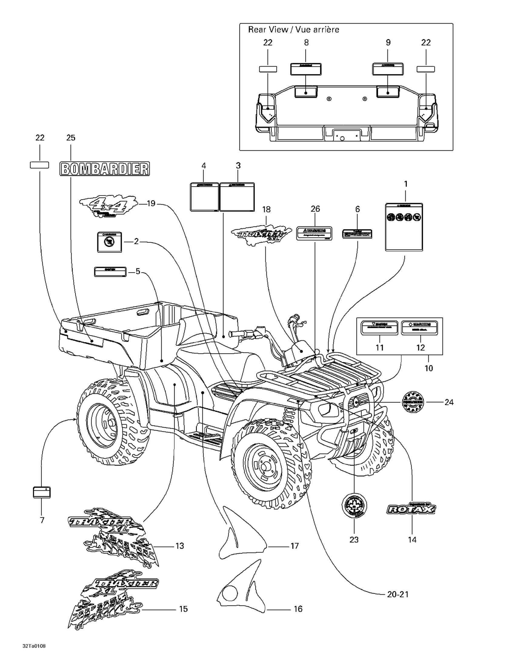 Can-Am Traxter XL, 7448/7489, 2001 Decals Diagram