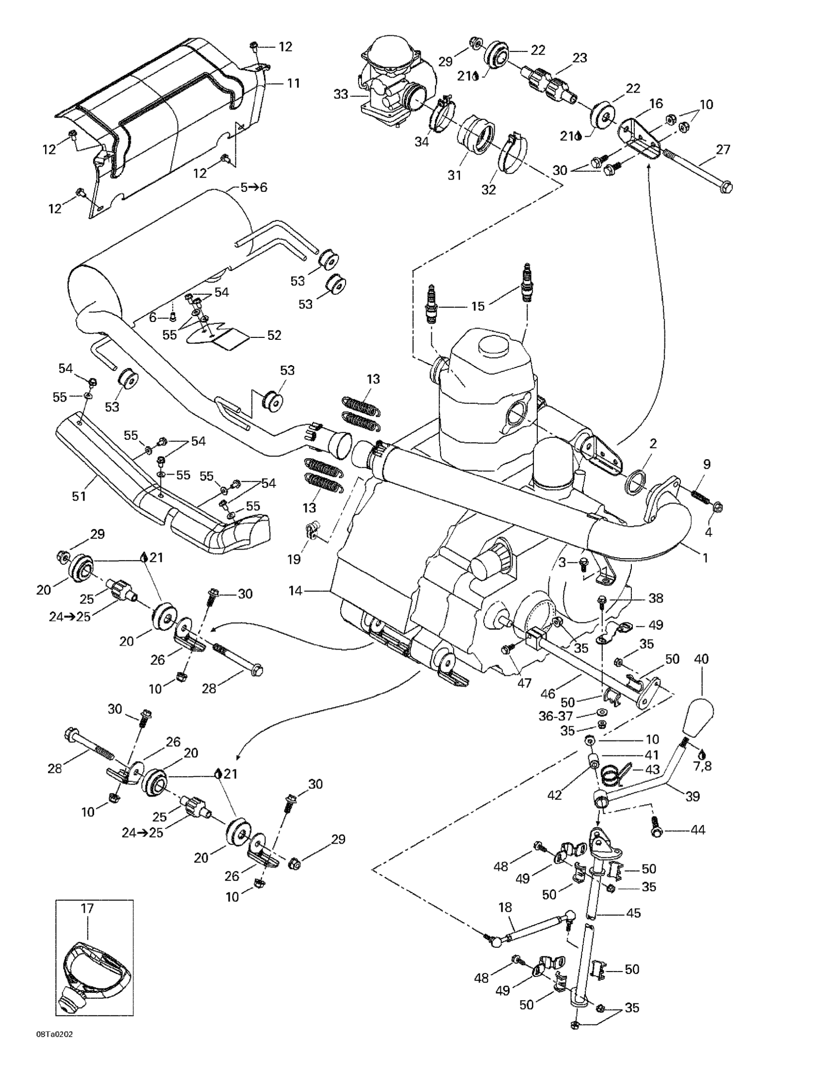Can-Am Traxter XL, 7477, 2002 Exhaust System Diagram