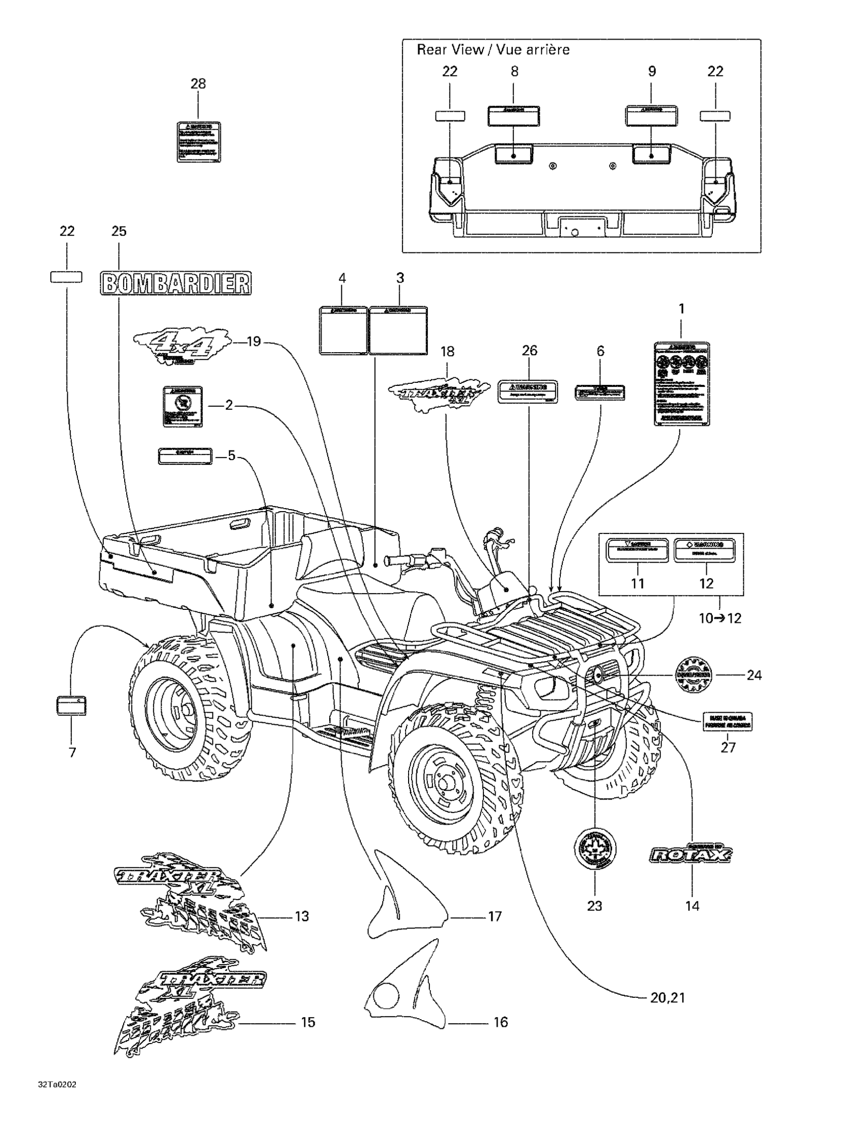 Can-Am Traxter XL, 7477, 2002 Decals Diagram
