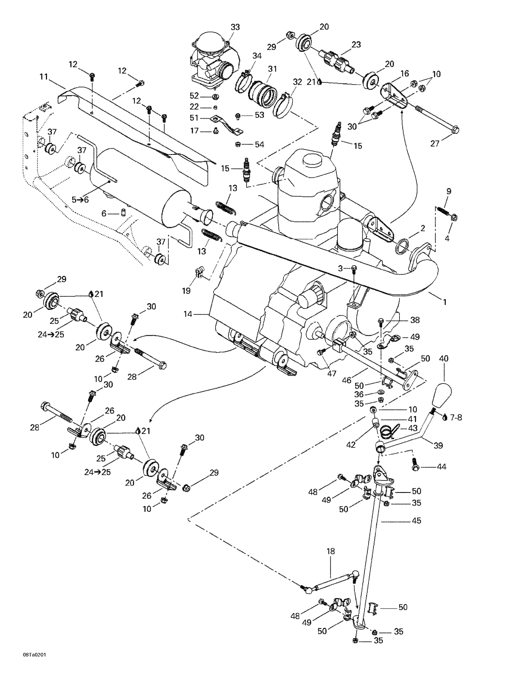 Can-Am Traxter XT, 2002 Exhaust System Diagram