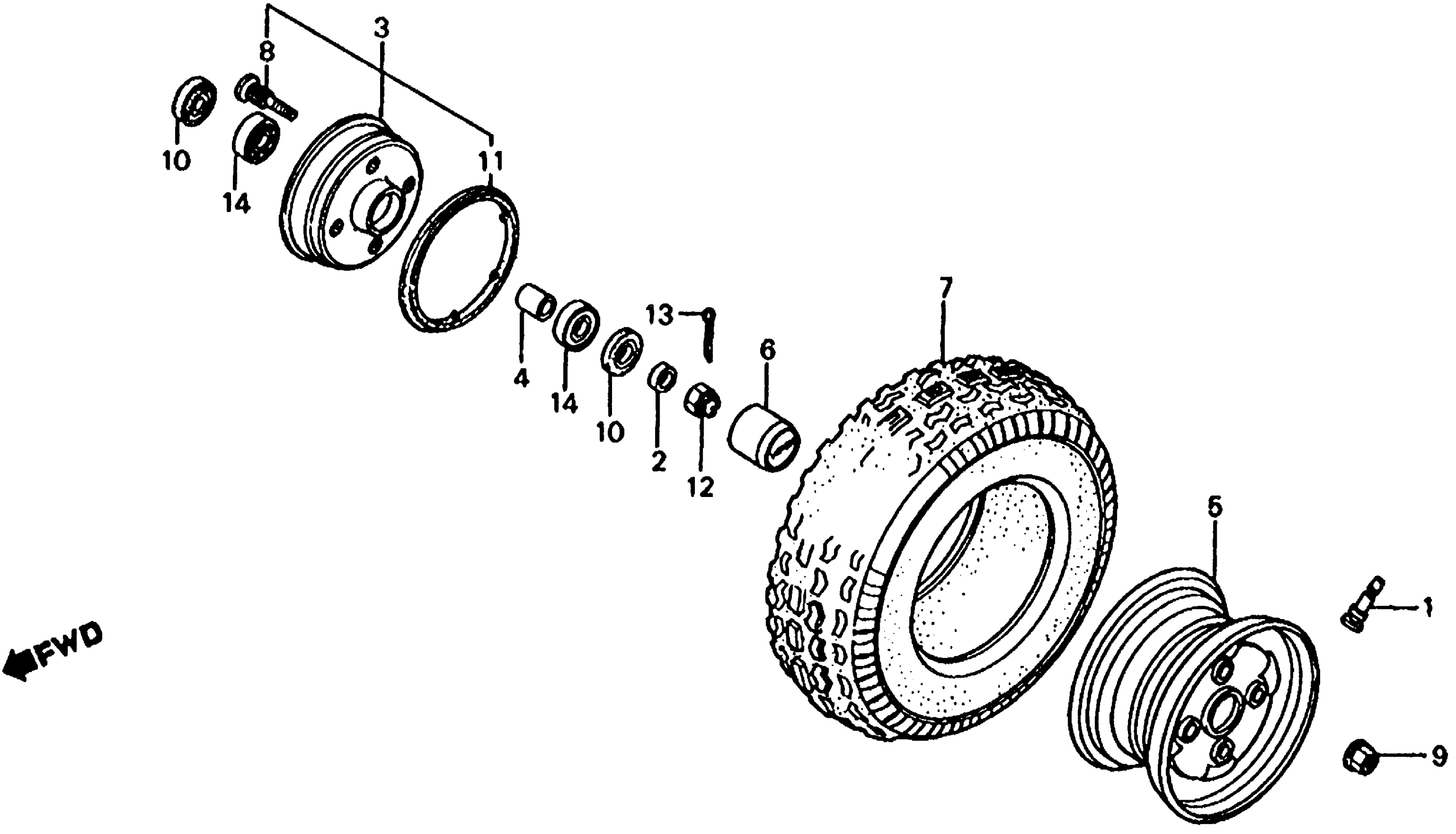 Honda TRX125A (86) FOURTRAX 125, JPN, VIN# JH3TE050-GC100001 FRONT WHEEL Diagram
