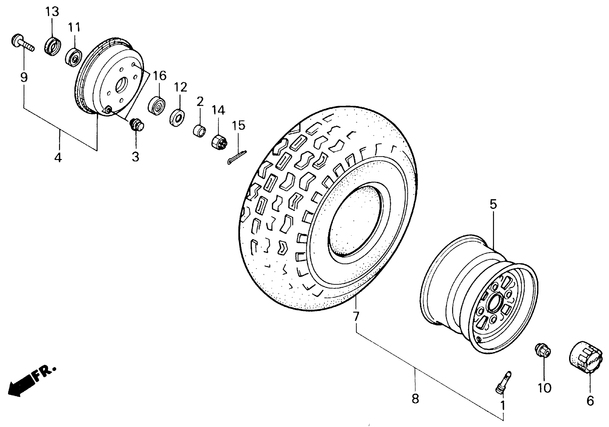 Honda TRX200SXA (87) FOURTRAX 200SX, JPN, VIN# JH3TE030-HK100004 TO JH3TE030-HK109673 FRONT WHEEL Diagram