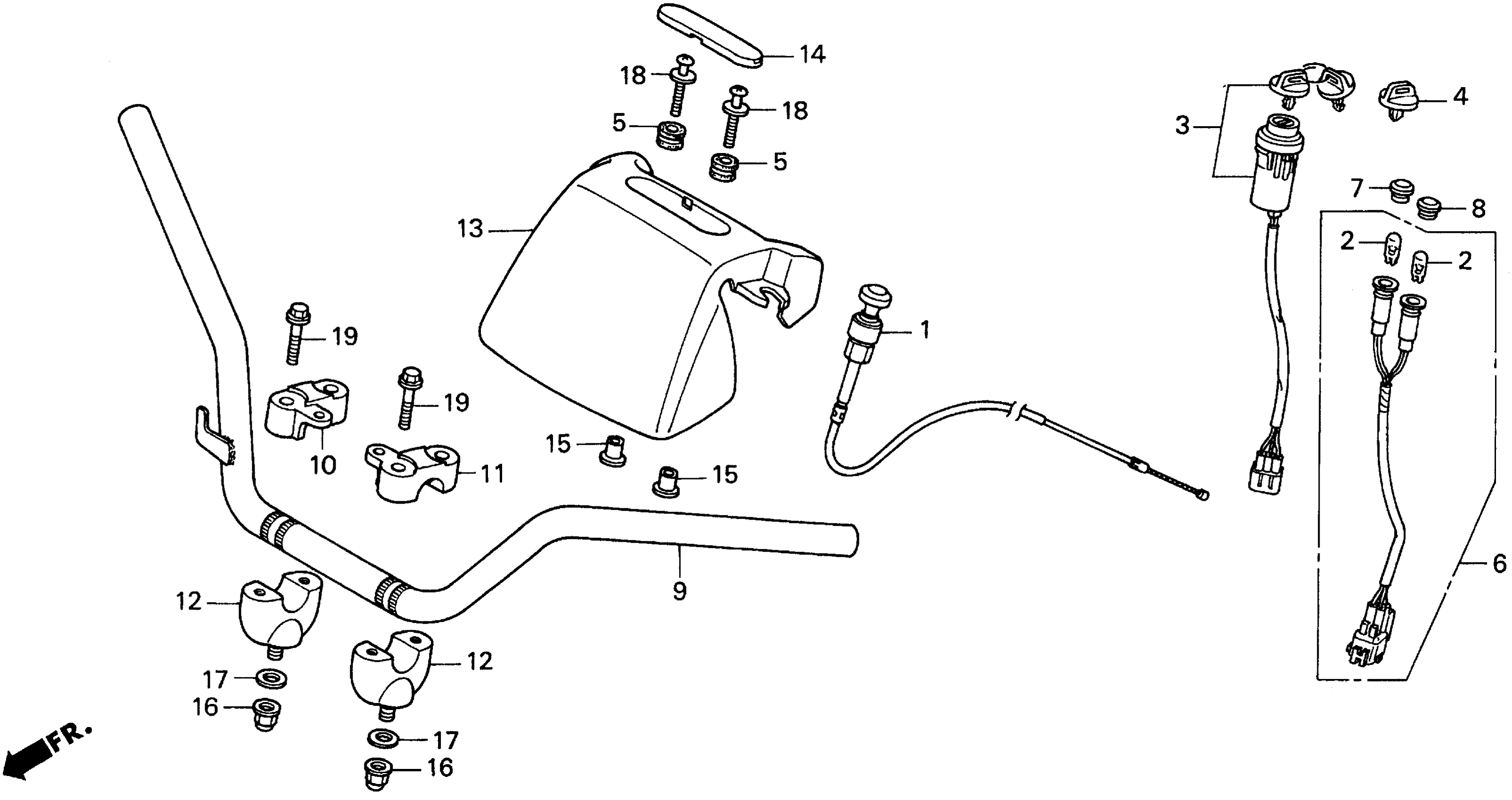 Honda TRX250A (01) TRX250 RECON, USA, VIN# 478TE210-14100001 HANDLEBAR Diagram