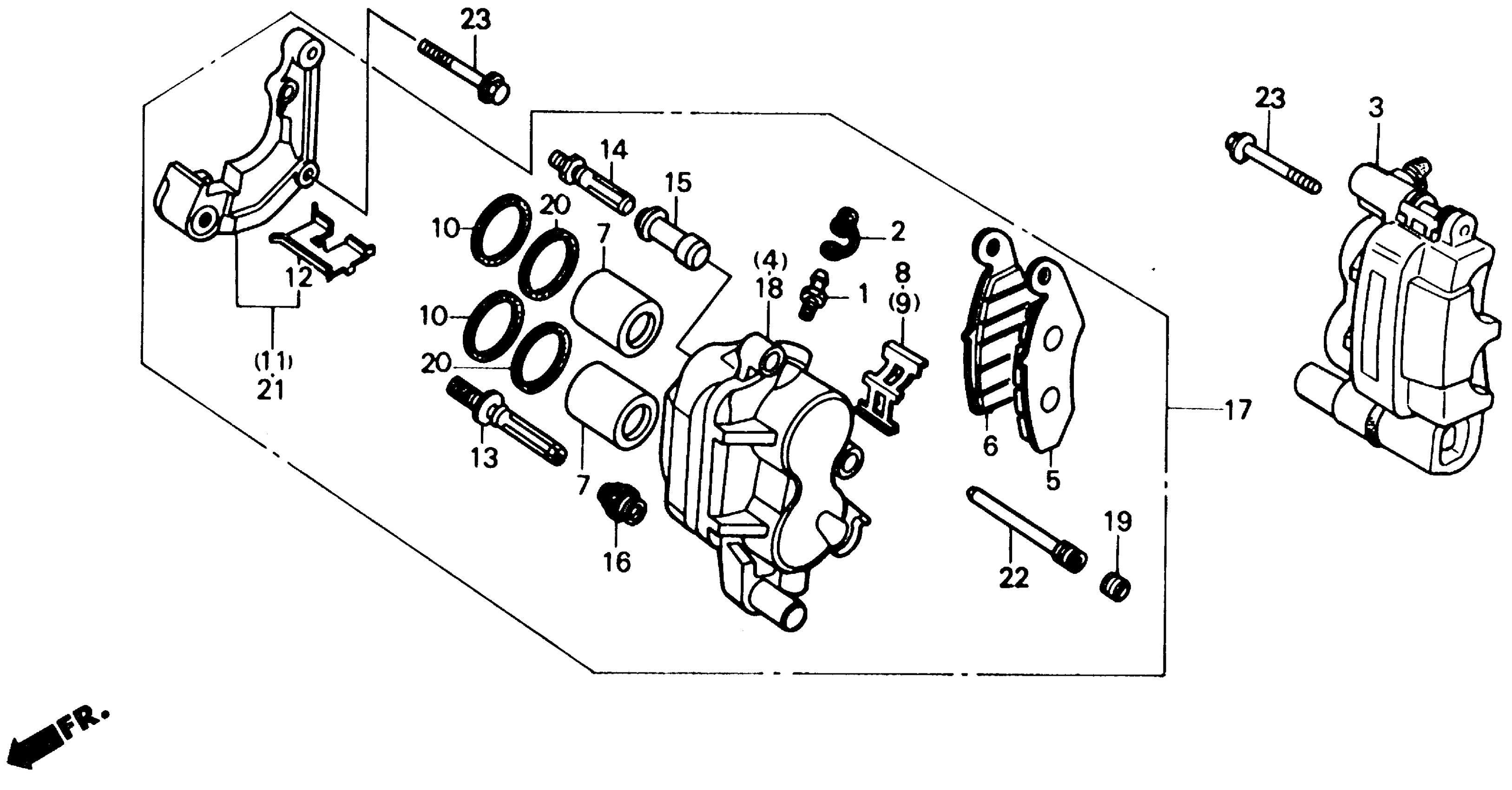Honda TRX250RA (89) FOURTRAX 250R, JPN, VIN# JH3TE120-KK300001 FRONT BRAKE CALIPER Diagram
