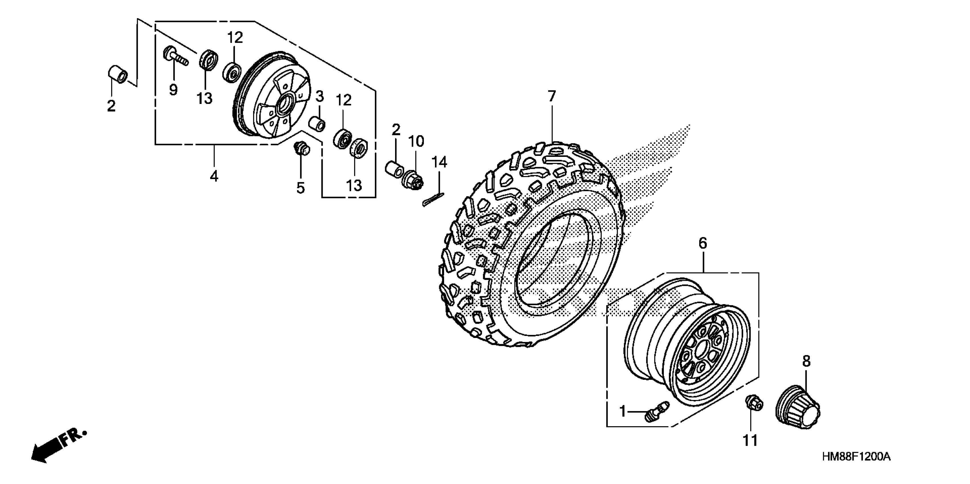 Honda TRX250TEA (09) FOURTRAX RECON ES, USA, VIN# 1HFTE214-94900001 FRONT WHEEL Diagram