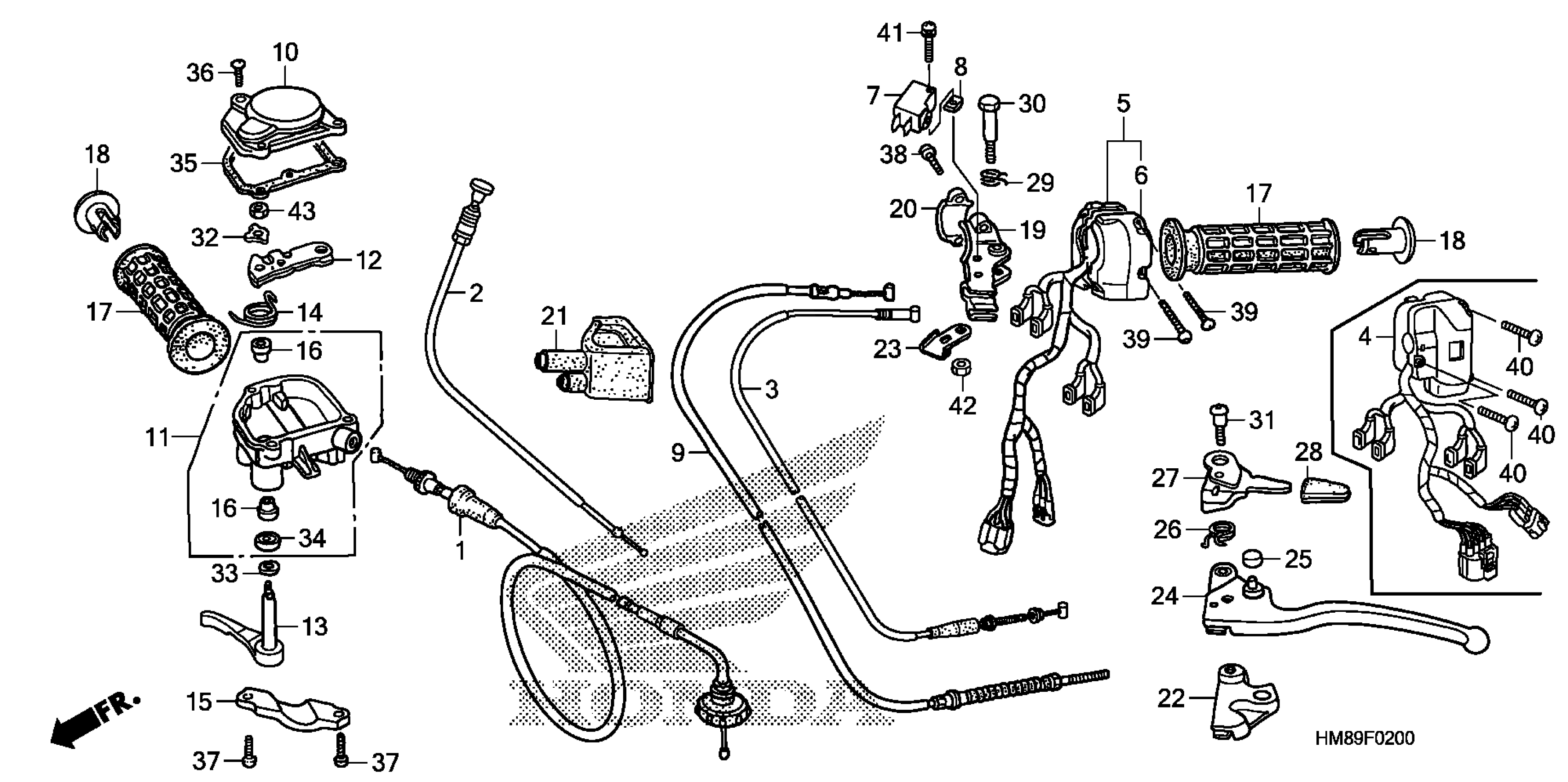 Honda TRX250TEAC (13) RECON ES, USA, VIN# 1HFTE214-D4400001 HANDLE LEVER + SWITCH + CABLE Diagram