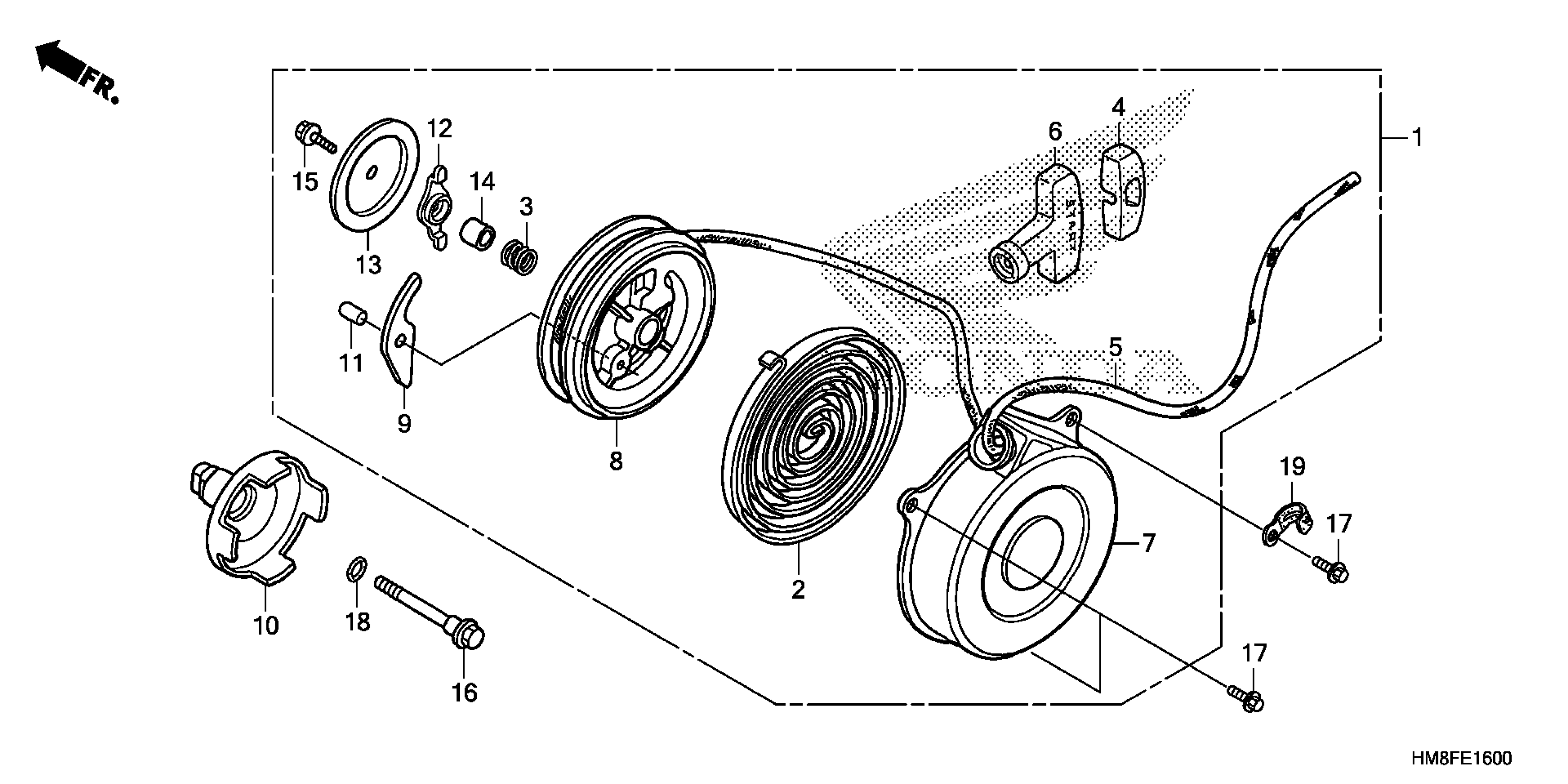 Honda TRX250TEAC (14) RECON ES, USA, VIN# 1HFTE214-E4500001 RECOIL STARTER Diagram