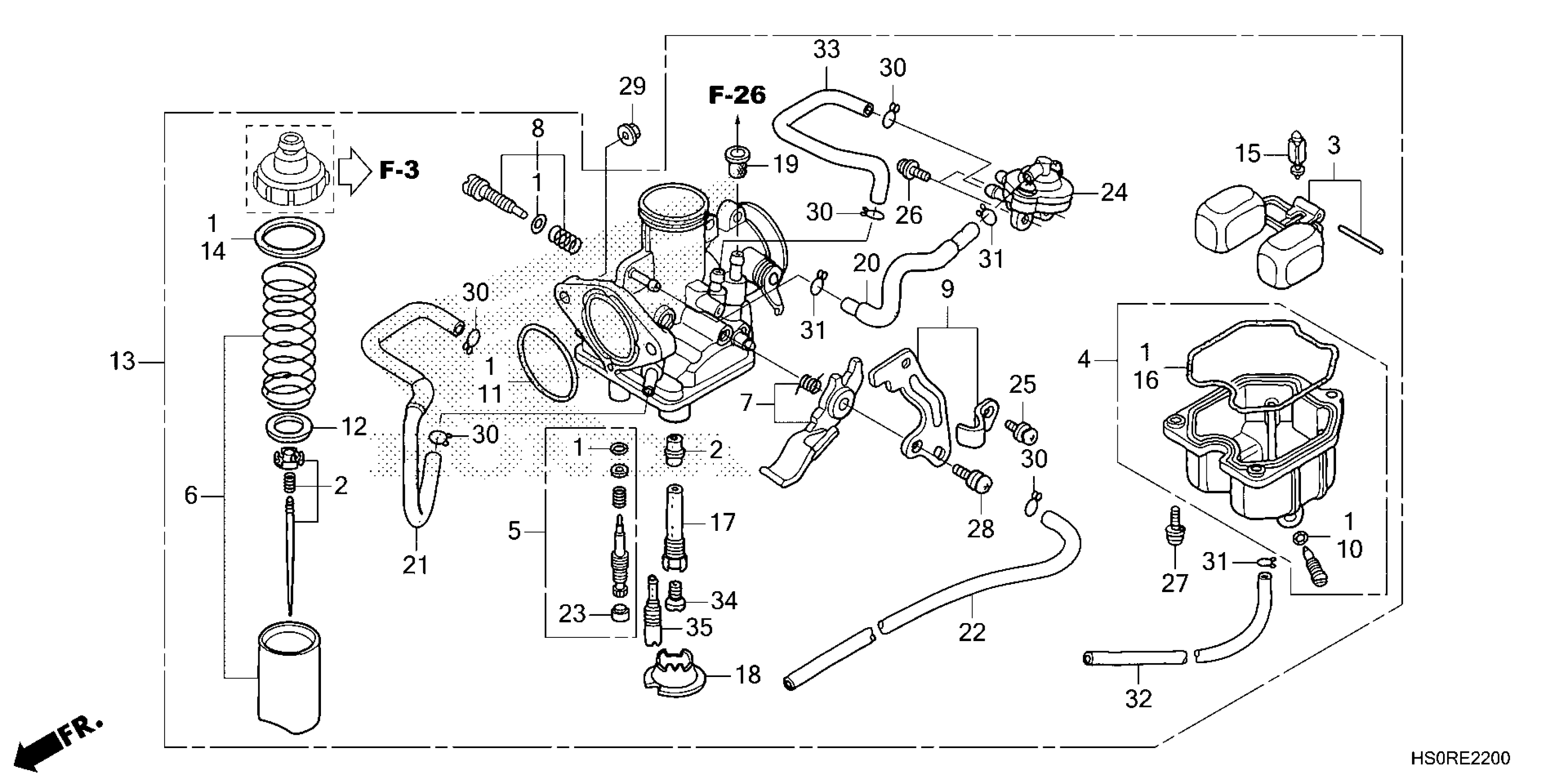 Honda TRX250TM1A (24) ALL-TERRAIN VEHICLE (ATV), USA, VIN# 1HFTE219-R4800001 TO 1HFTE219-R4899999 CARBURETOR Diagram