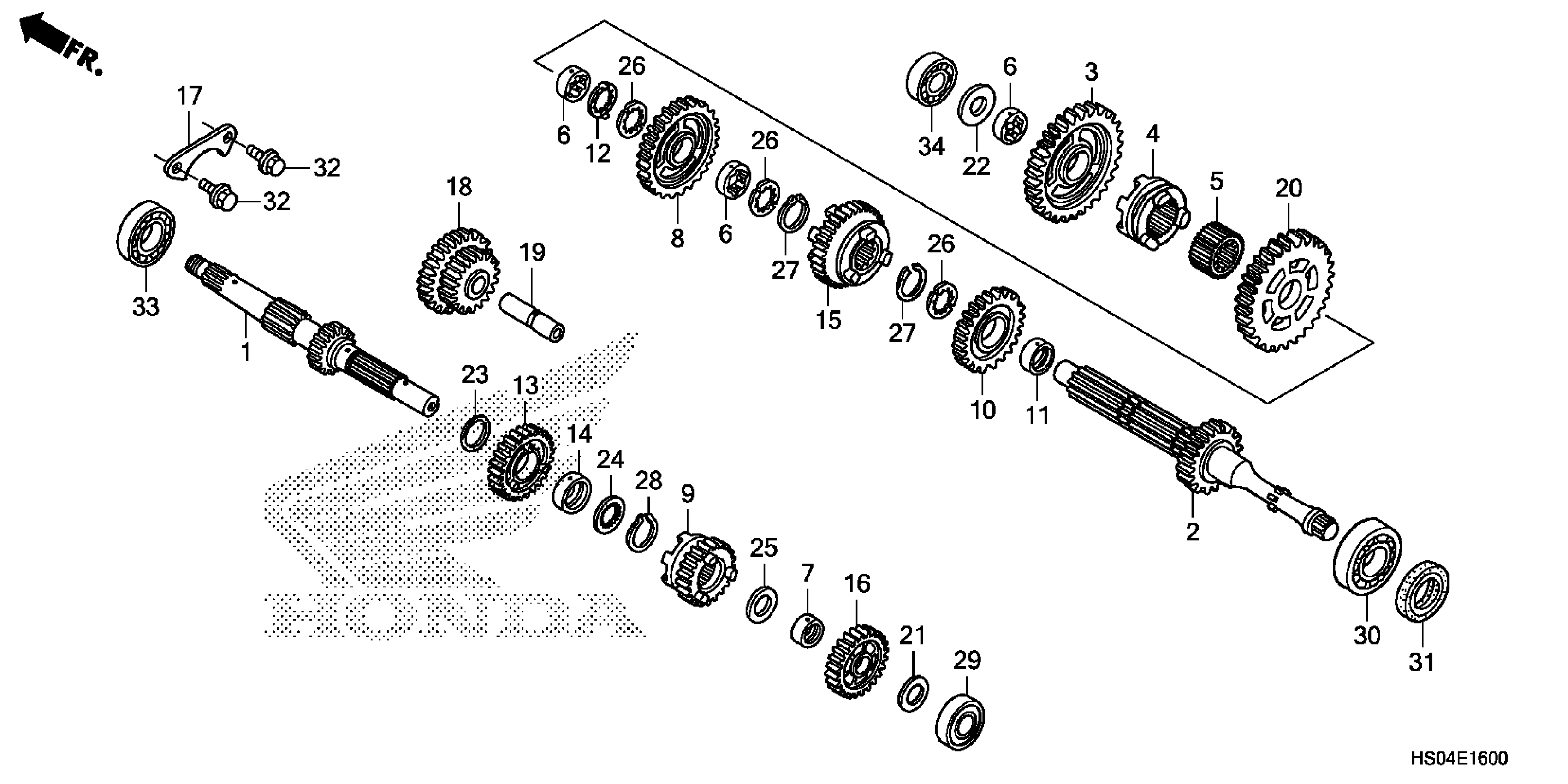Honda TRX250TMAC (17) TRX250TM, USA, VIN# 1HFTE210-H4100001 TO 1HFTE210-H4199999 TRANSMISSION Diagram