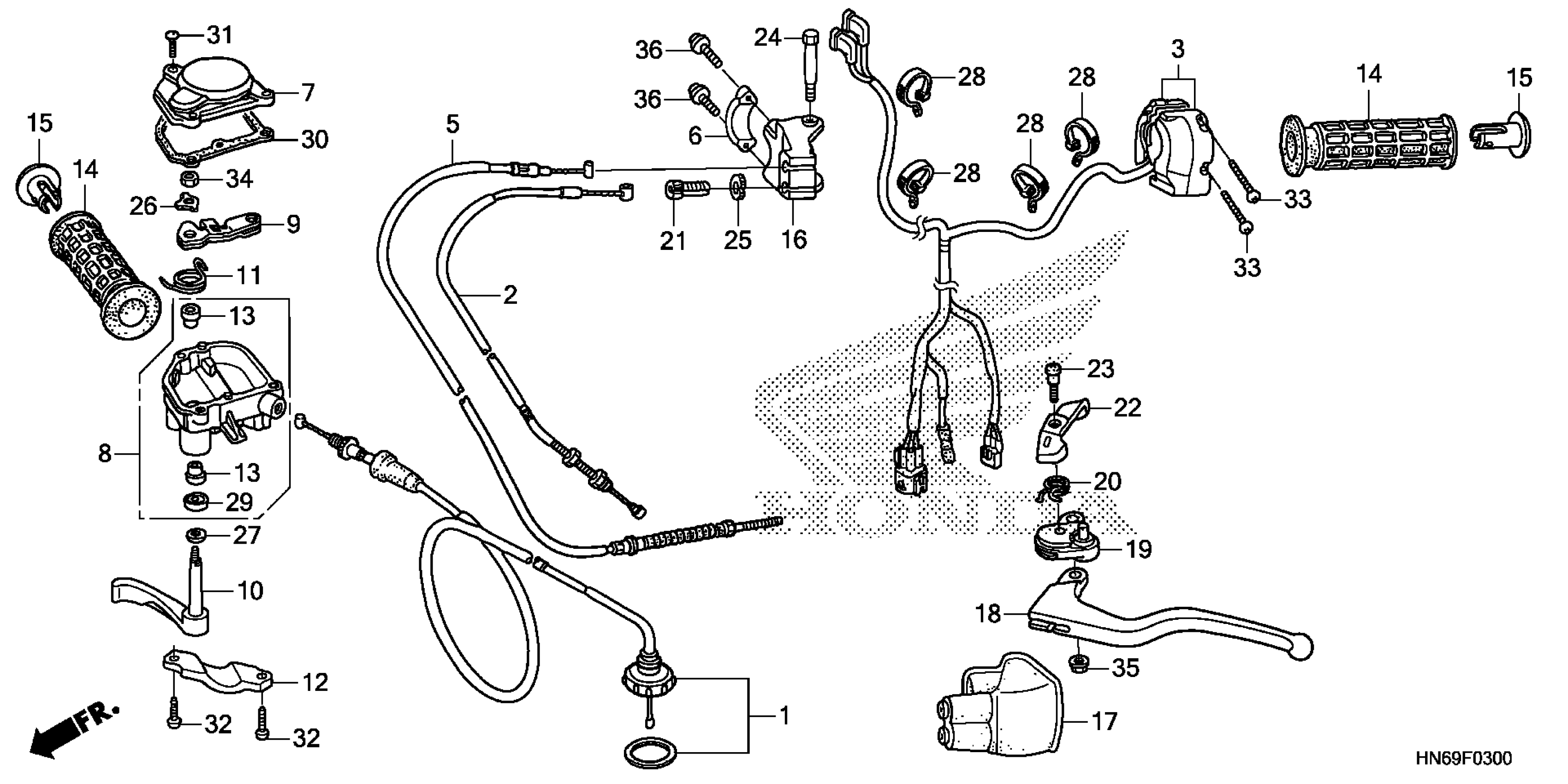 Honda TRX250X1A (24) ALL-TERRAIN VEHICLE (ATV), USA, VIN# 1HFTE274-R4300001 TO 1HFTE274-R4399999 HANDLE LEVER@SWITCH@CABLE Diagram