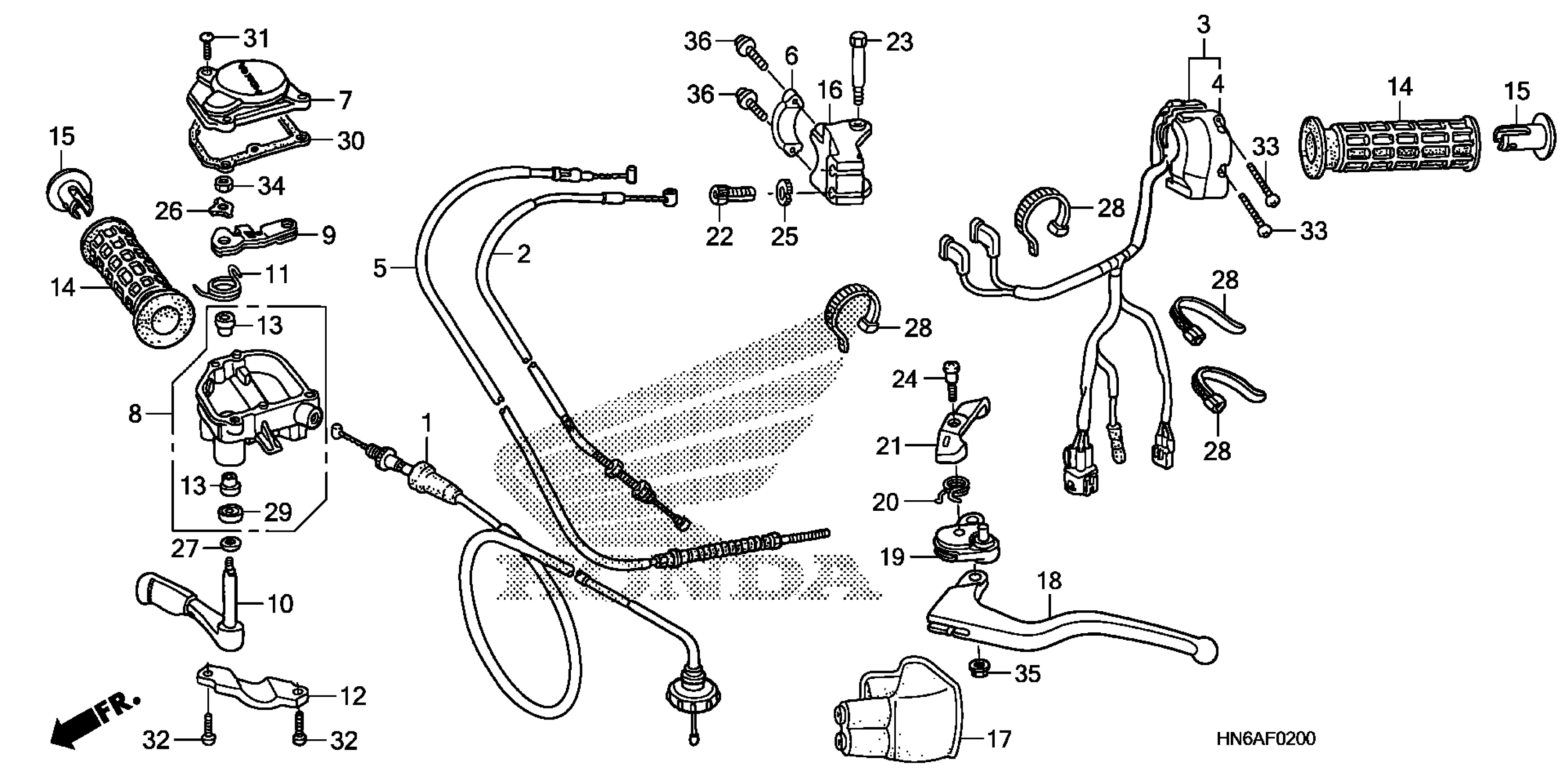 Honda TRX250XA (09) ALL-TERRAIN VEHICLE (ATV), USA, VIN# 1HFTE270-94800001 TO 1HFTE270-94999999 HANDLE LEVER@SWITCH@CABLE Diagram