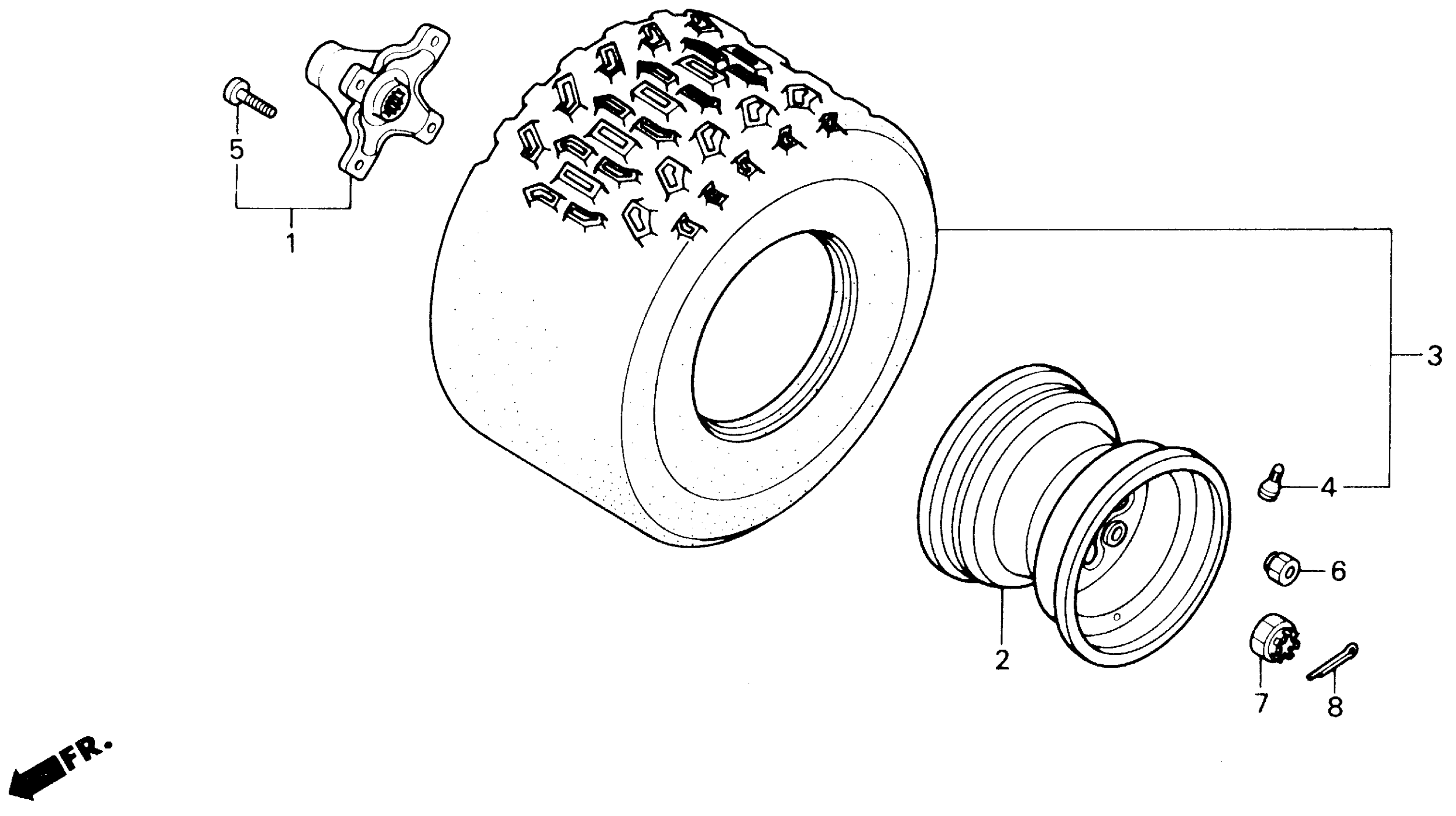 Honda TRX250XA (88) FOURTRAX 250X, JPN, VIN# JH3TE130-JK100002 TO JH3TE130-JK104166 REAR WHEEL Diagram