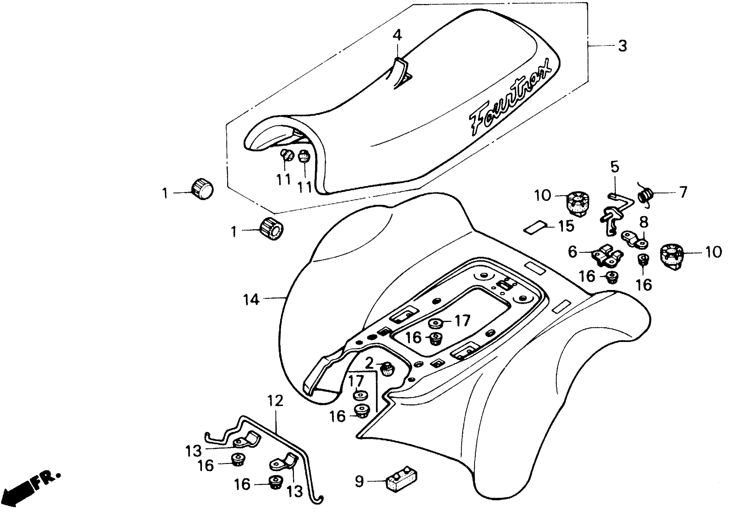 Honda TRX250XA (92) FOURTRAX 250X, JPN, VIN# JH3TE130-NM400001 REAR FENDER Diagram