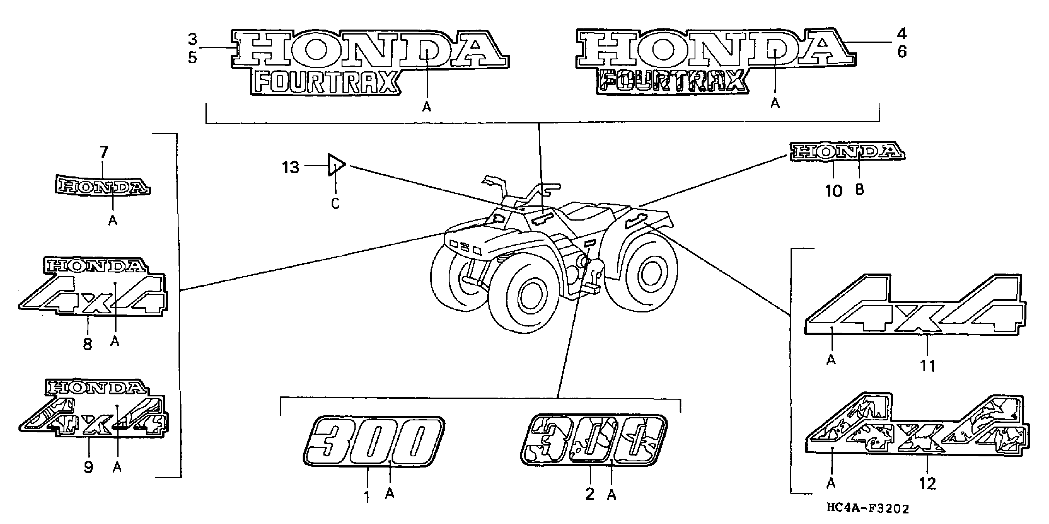 - TRX300A (95) FOURTRAX 300, USA, VIN# 478TE140-SA700001 TO 478TE140-SA799999