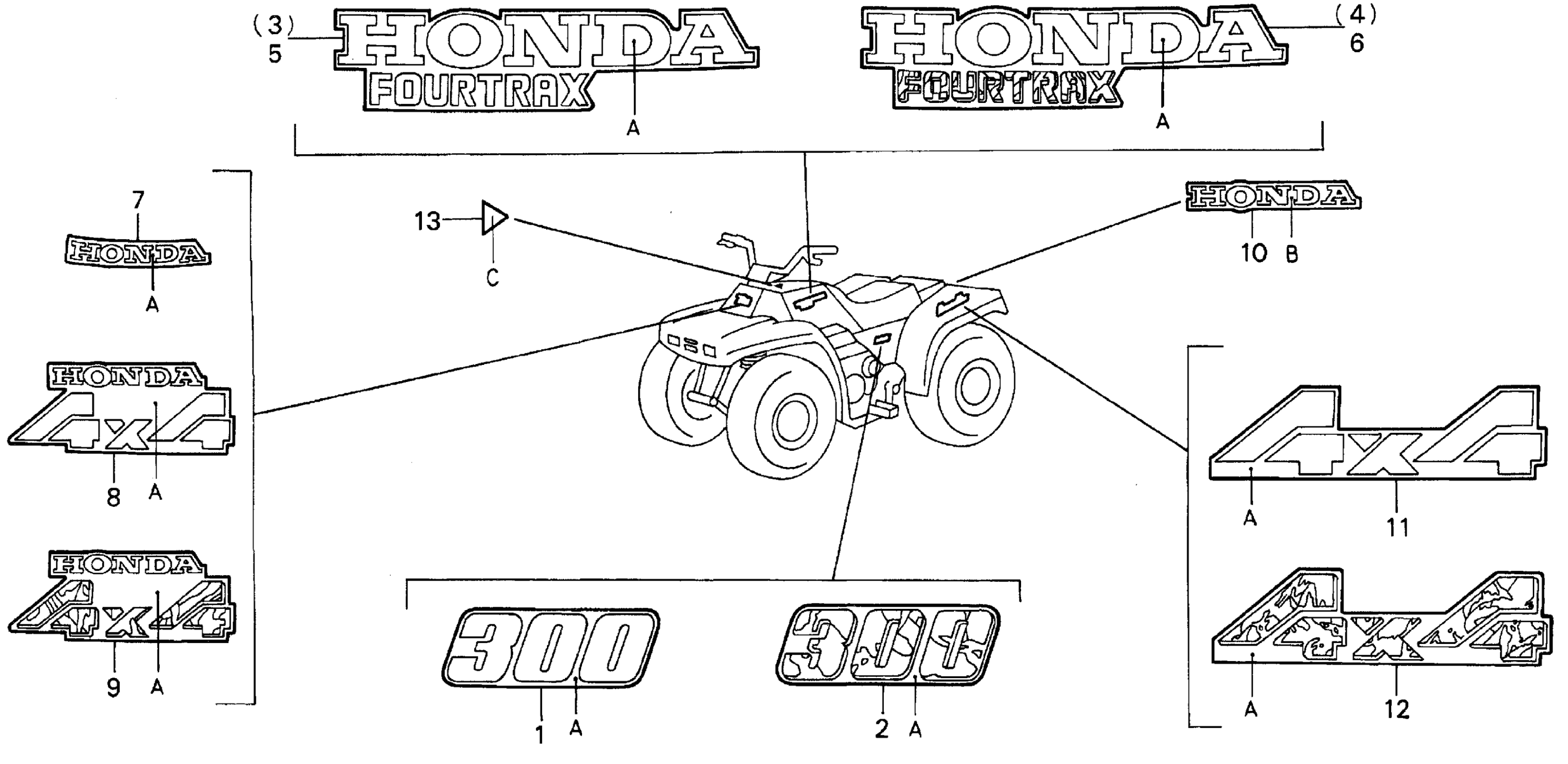 Honda TRX300A (99) FOURTRAX 300, USA, VIN# 478TE140-XA000001 MARKS Diagram