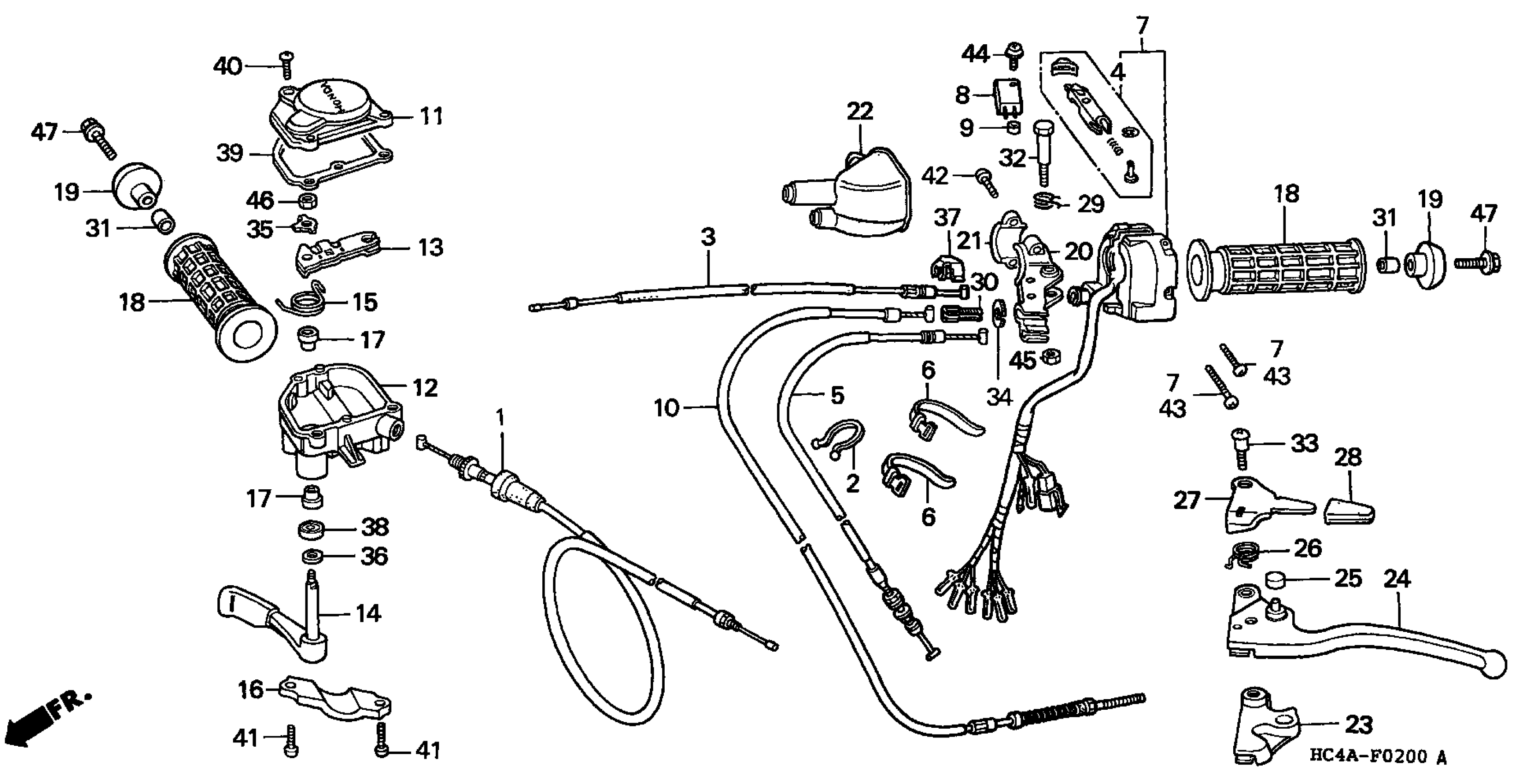 Honda TRX300AN (92) FOURTRAX 300, USA, VIN# 478TE143-NA400001 TO 478TE143-NA400080 HANDLE SWITCH Diagram