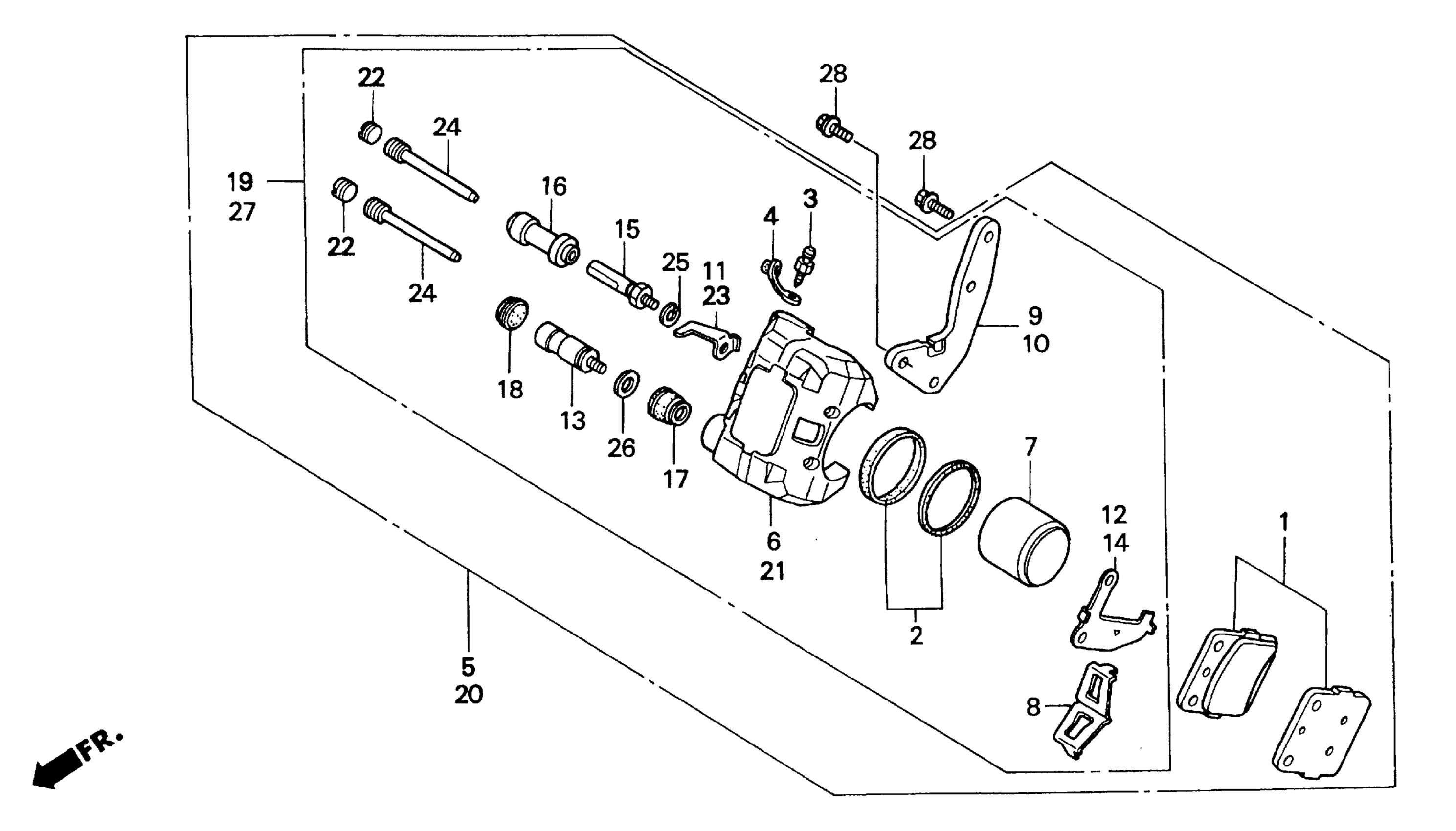 Honda TRX300EXA (94) FOURTRAX 300EX, JPN, VIN# JH2TE190-RT100001 FRONT BRAKE CALIPER Diagram